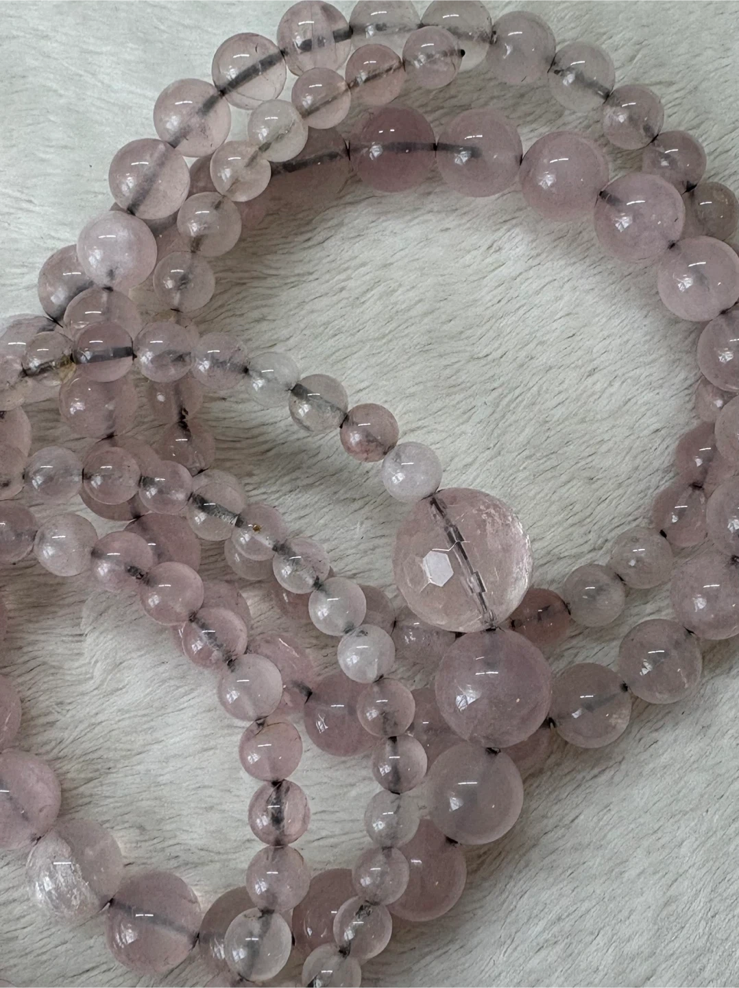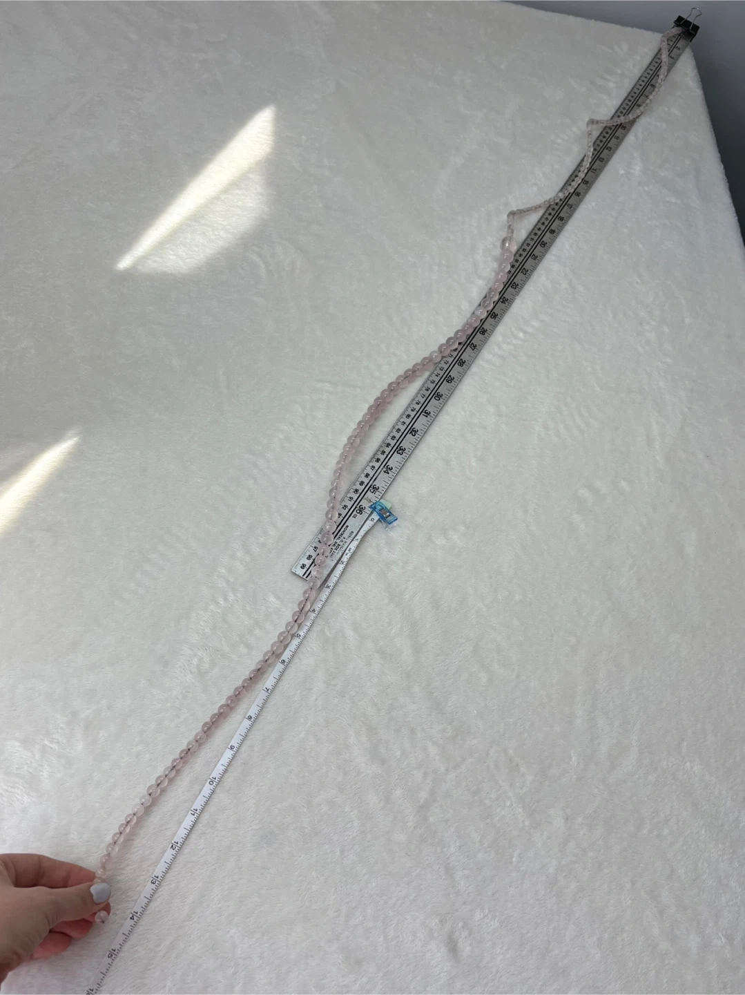 This versatile 52 inch rose quartz beaded wire coil features assorted bead sizes for a beautiful, organic look. The flexible wire allows it to be used as a decorative garland or wrapped around a pillar candle for a personalized boho touch. Crafted with genuine rose quartz, it adds a soft, calming aesthetic to any space.