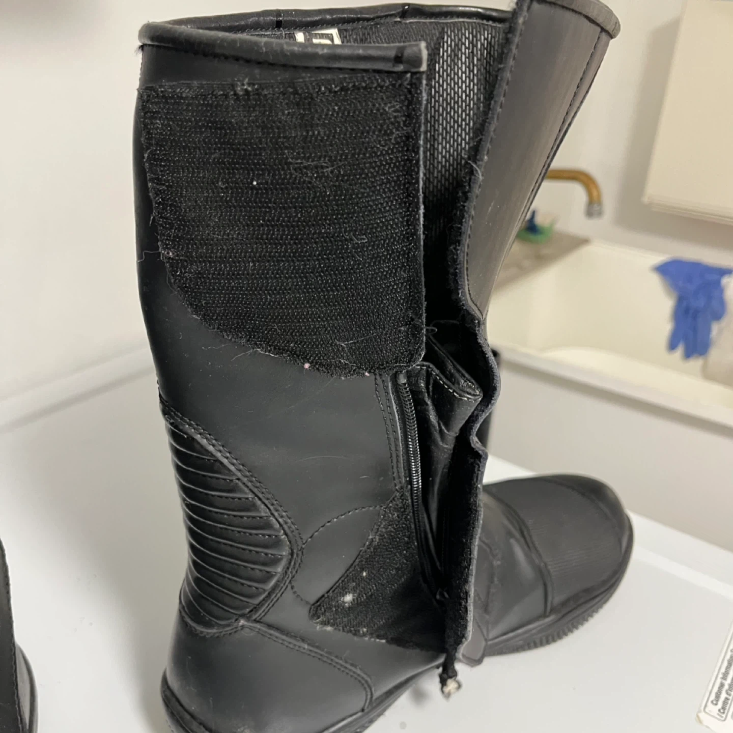 Altiimate motorcycle boots in black. Leather upper with rubber bottom. Size 10.