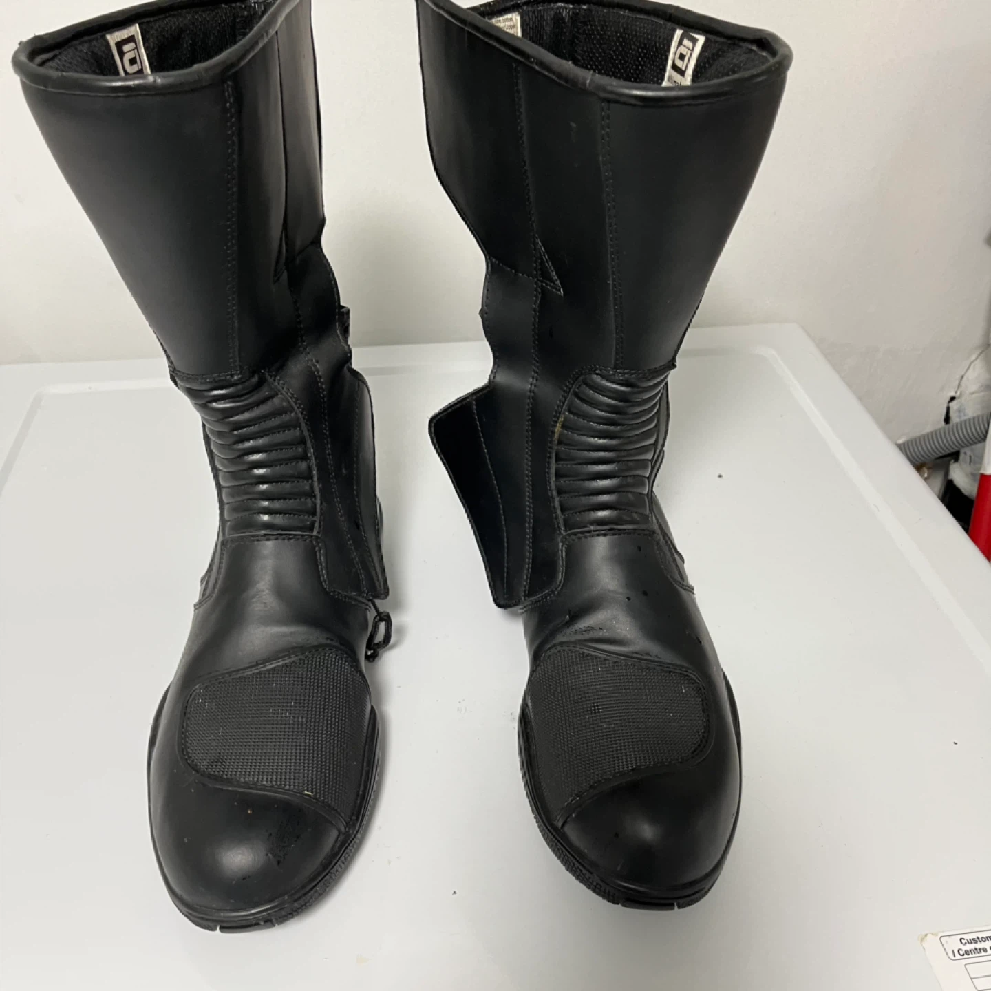 Altiimate motorcycle boots in black. Leather upper with rubber bottom. Size 10.