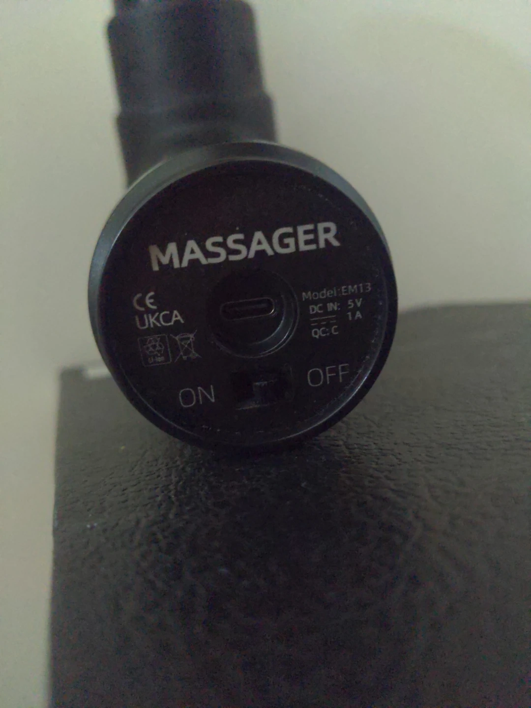 This is an AERLANG massage gun. It's black and includes a round attachment. It's useful for muscle recovery after workouts.