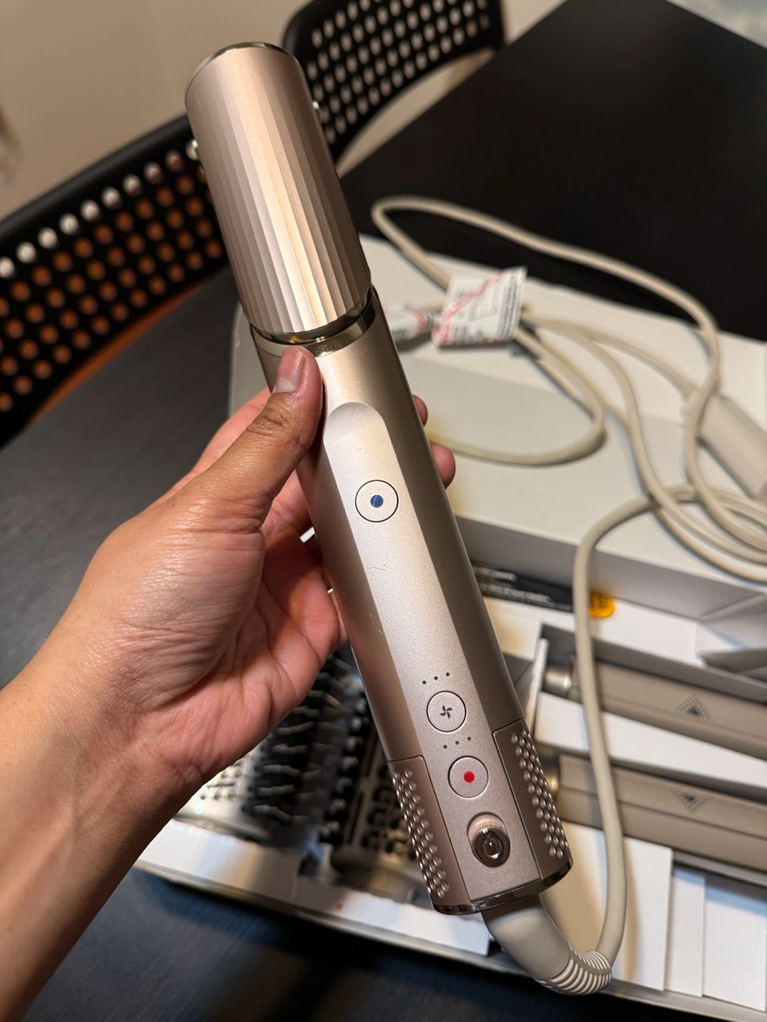 Comes with all 4 attachments for curling drying and hair smoothing brush.