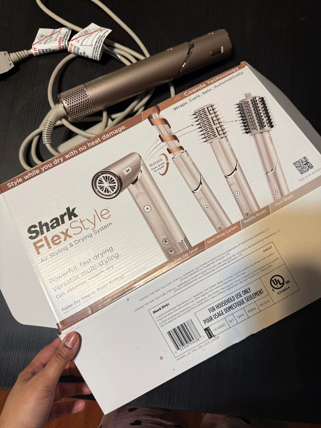 Shark FlexStyle Air Styling & Drying System. Includes ultra-fast hair dryer, auto-wrap curlers, paddle brush, and oval brush.