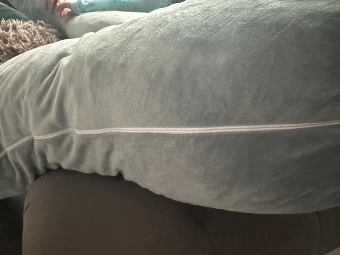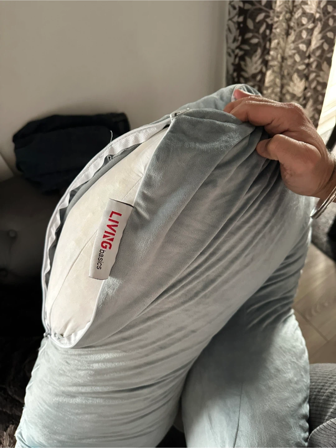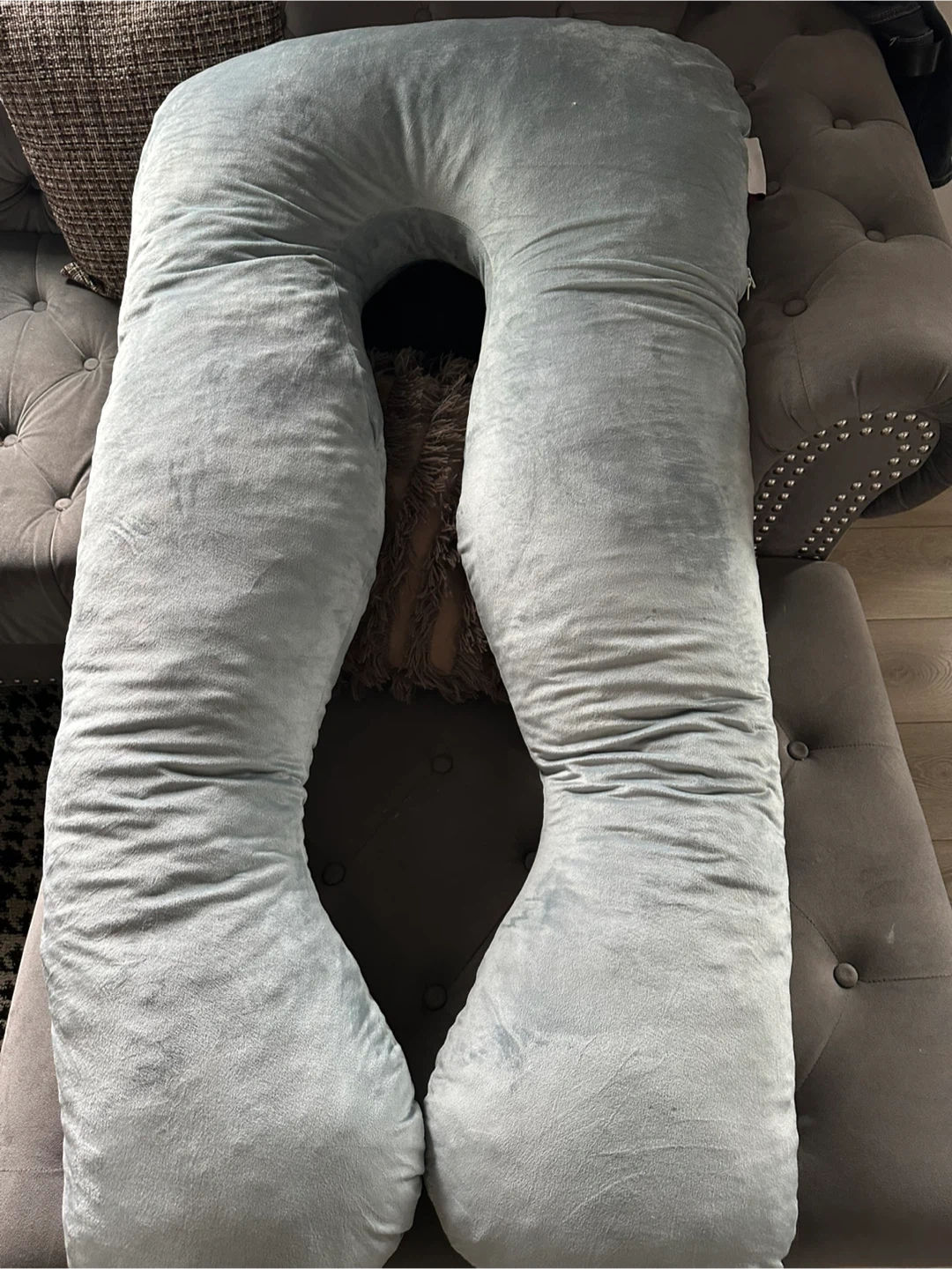 This U-shaped pillow from Living Basics offers full body support. It's covered in a soft, plush fabric for comfort. This pillow is great for nursing, maternity support, or general relaxation.