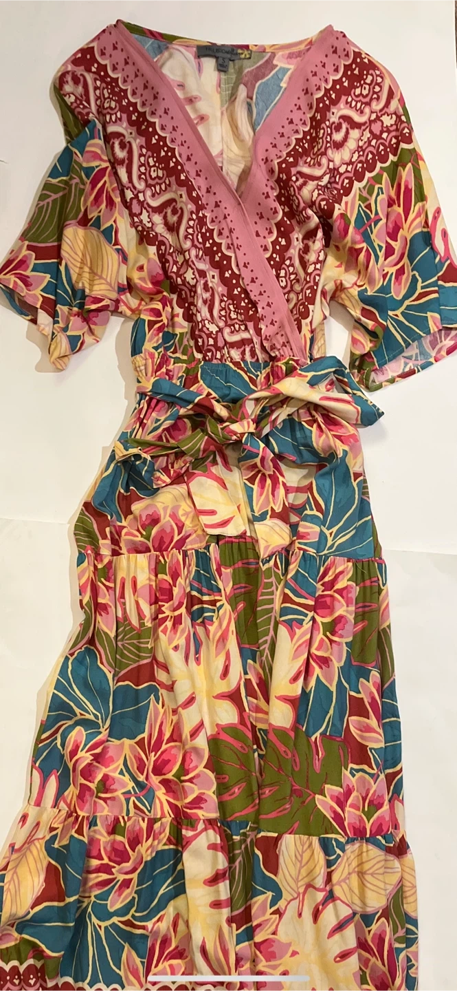 It features a beautiful floral print and a flattering wrap style. Perfect for summer days or a special occasion! New with it tag