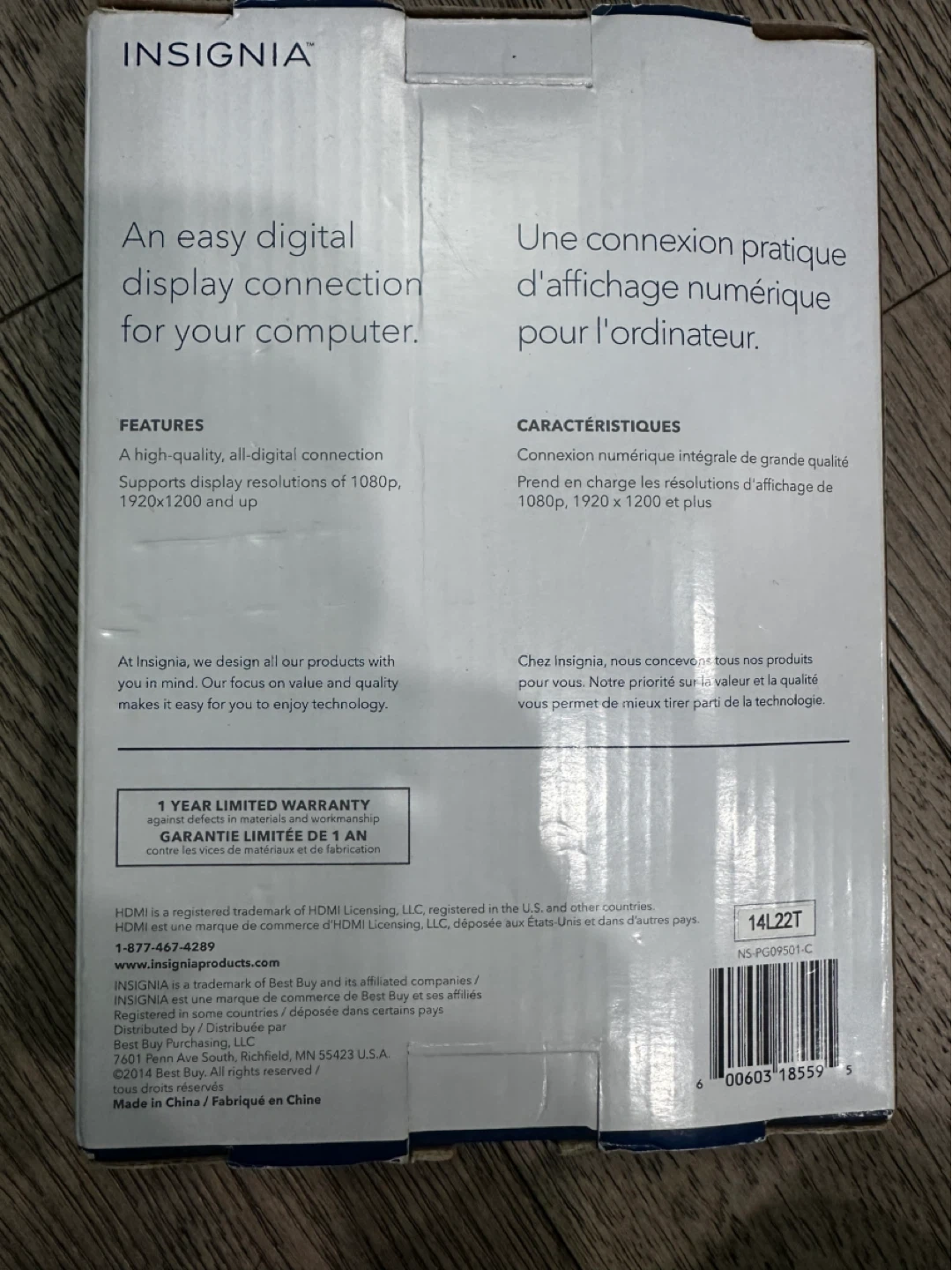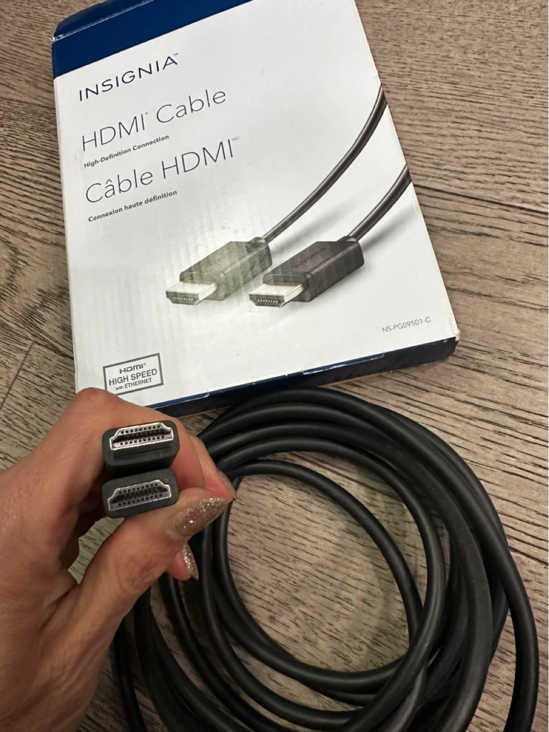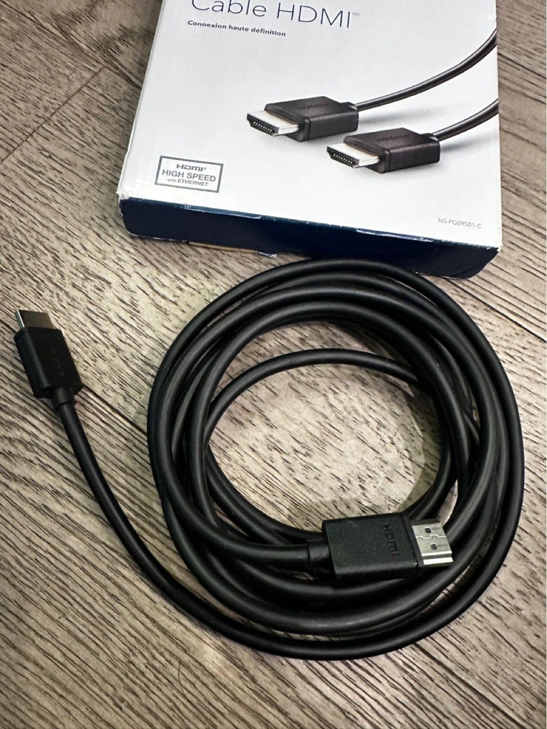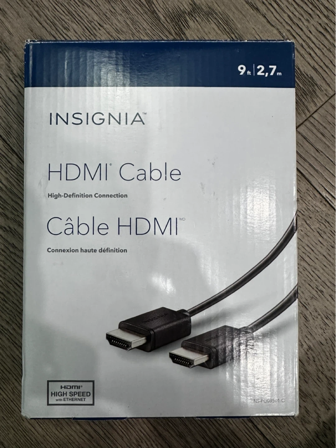 High-speed HDMI cable providing a digital display connection. Supports display resolutions of 1080p, 1920x1200 and up. Cable length is 9 feet.