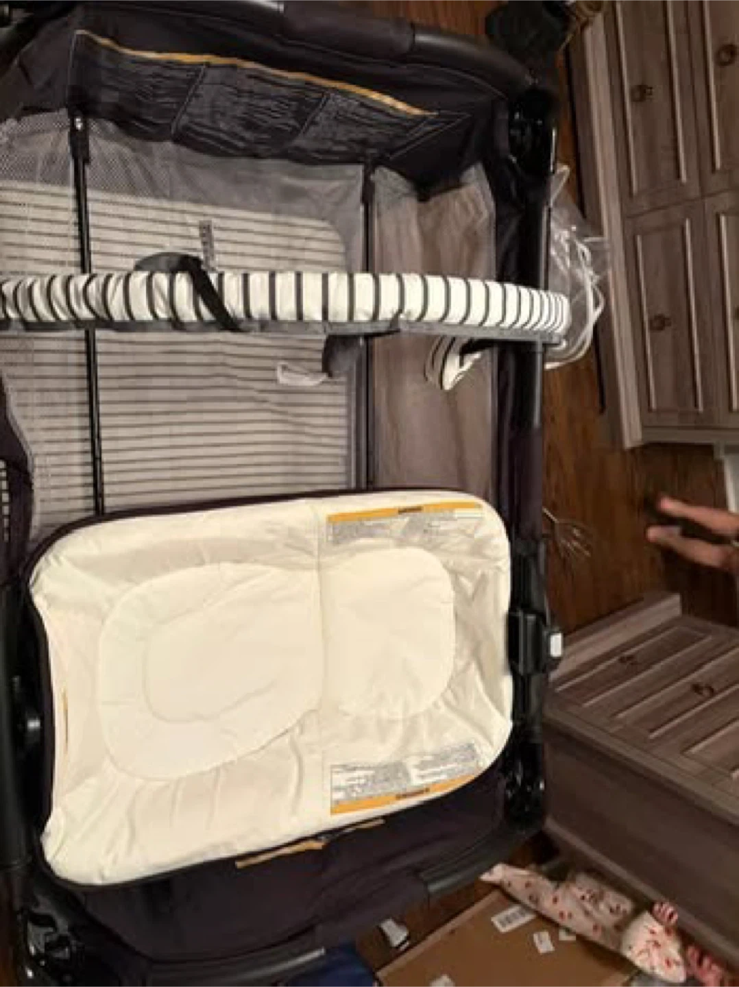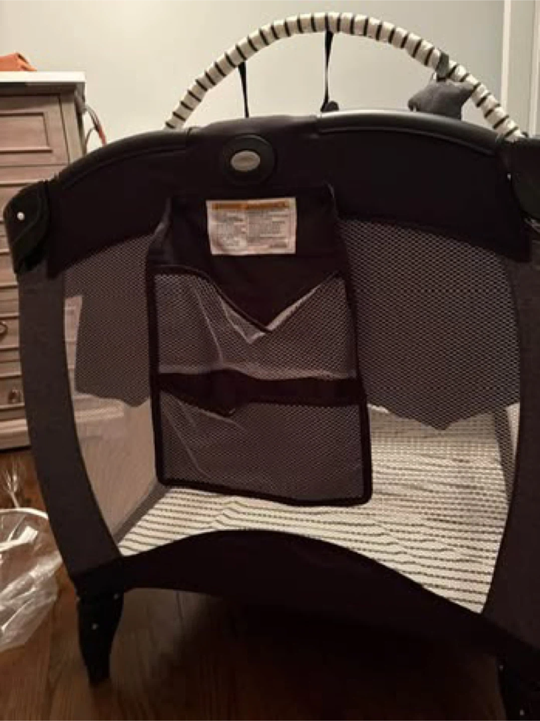 This Graco Pack 'n Play includes a bassinet attachment and a travel bag. It's easy to set up and take down. The side pockets offer convenient storage. It's great for travel or for use at home!