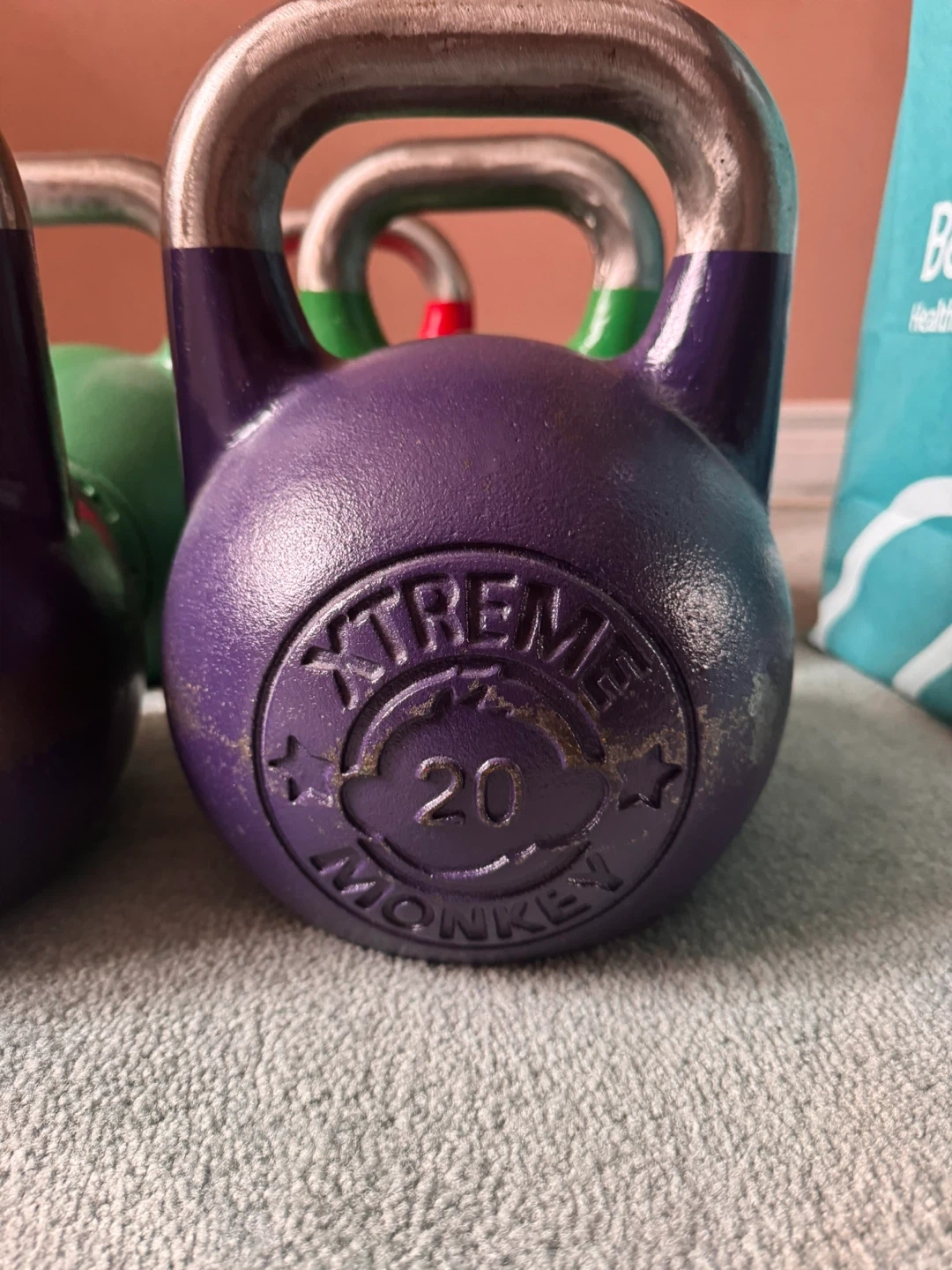 Set of Xtreme Monkey kettlebells including a 20kg, 24kg, and 32kg weight. These kettlebells are great for a variety of strength and conditioning exercises. They have a durable cast iron construction and a comfortable grip handle.
