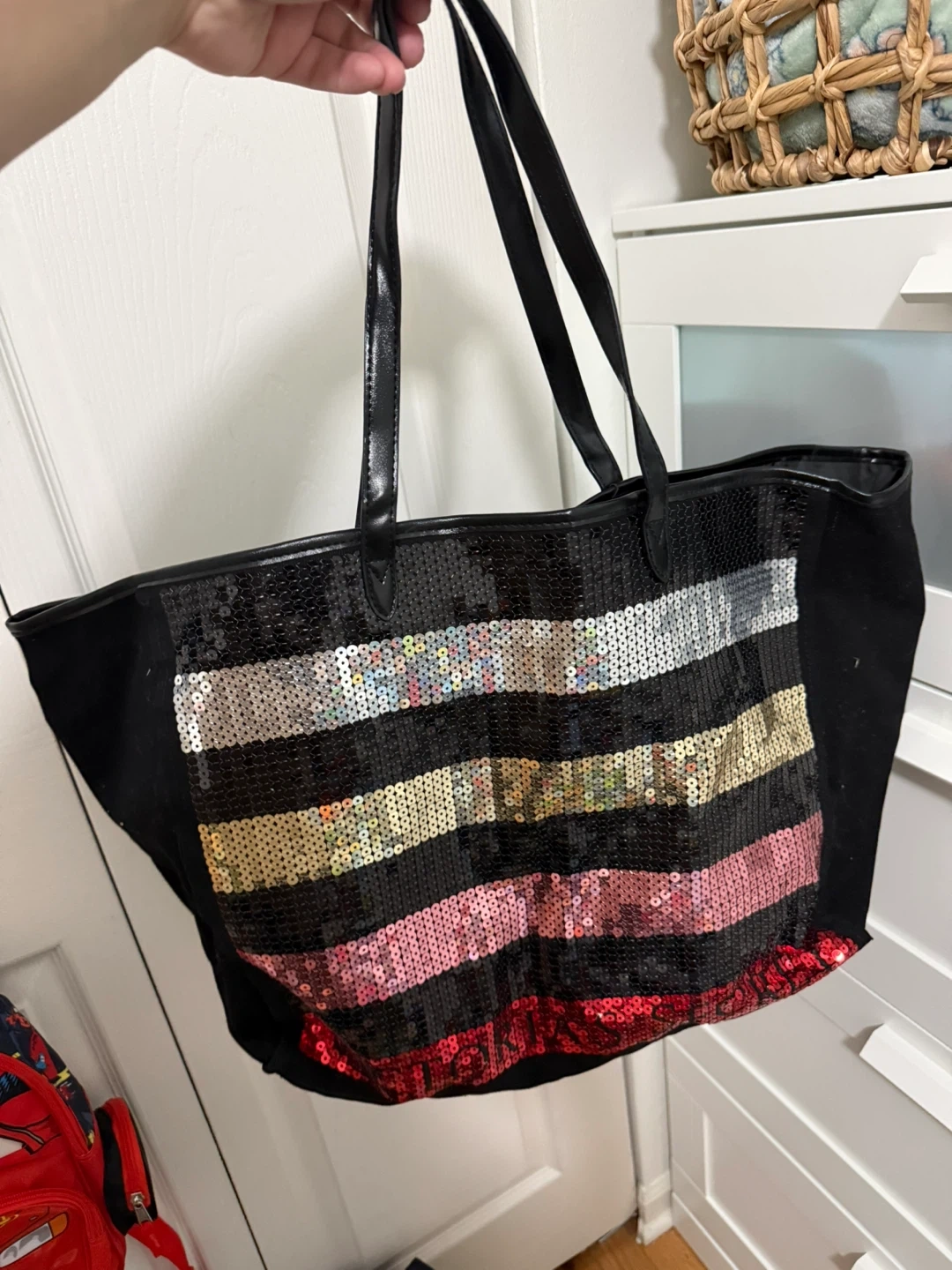 Buy & SellVictoria's Secret Sequin Tote BagVictoria's Secret Sequin Tote Bag$14Sparkly tote bag with a sequined front panel and black canvas back. It has a spacious interior with a black lining. Comfortable faux leather straps.BrandVictoria's SecretWHERE TO MEETIKEAView MapSELLERverifiedAshDowners Grove650 reviews0 chats·0 favorites·2 viewsSEND CHAT TO SELLERHi Ash! I’m interested in your listing.Hi Ash! I’m interested in your listing.Get the Karrot app to chatSign In to chat