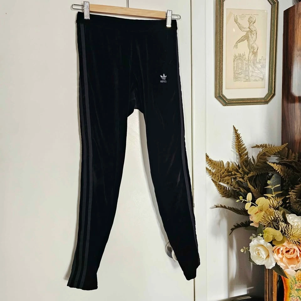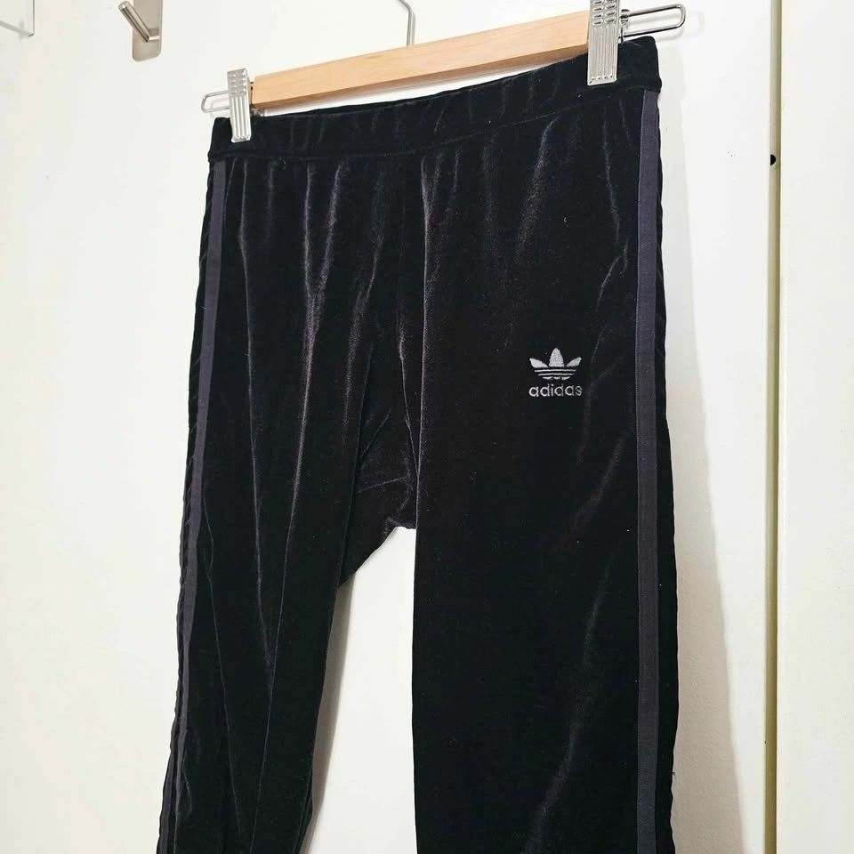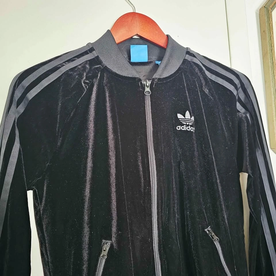 Adidas Black Velvet Velour Tracksuit Set - Size Small