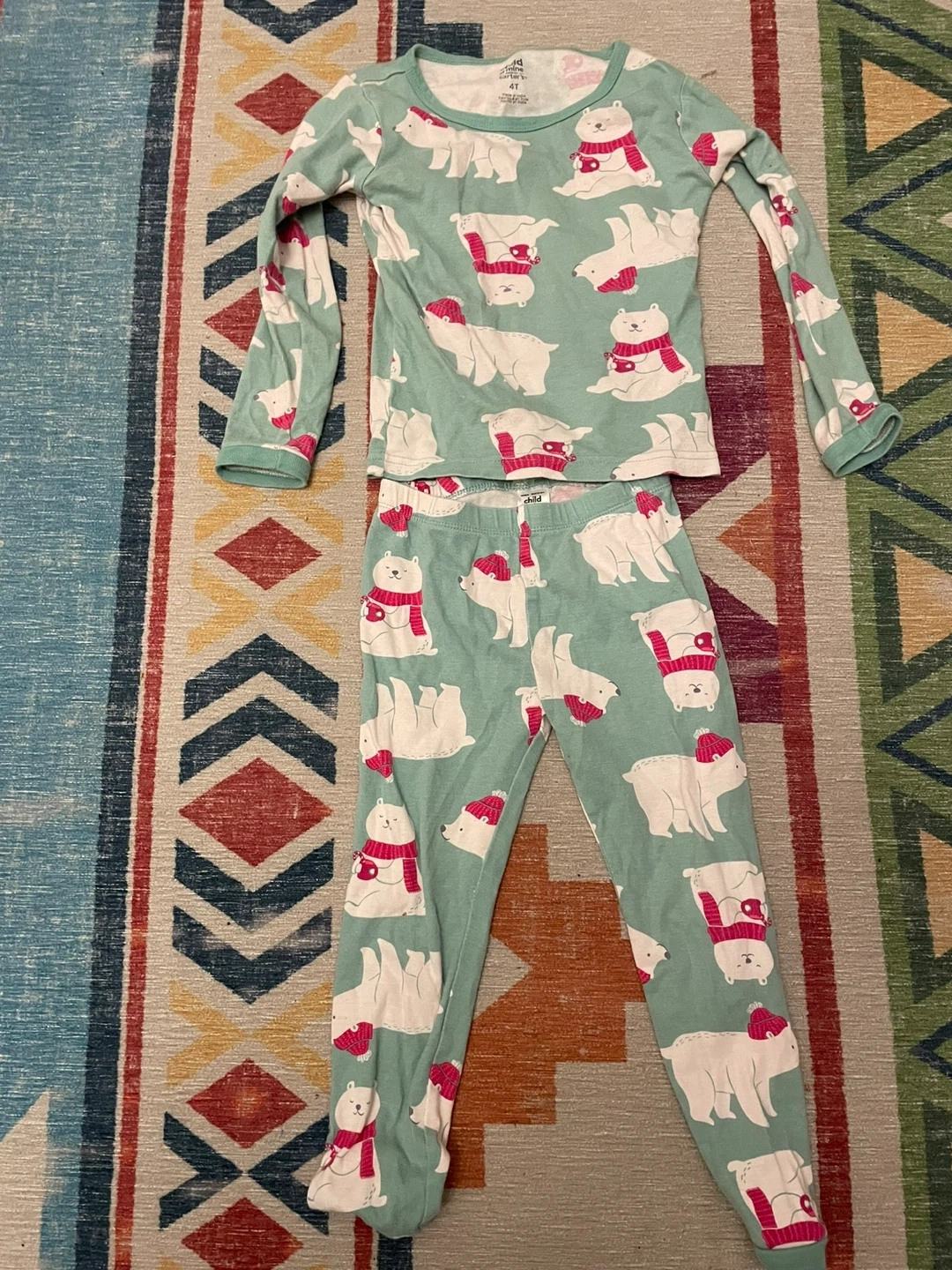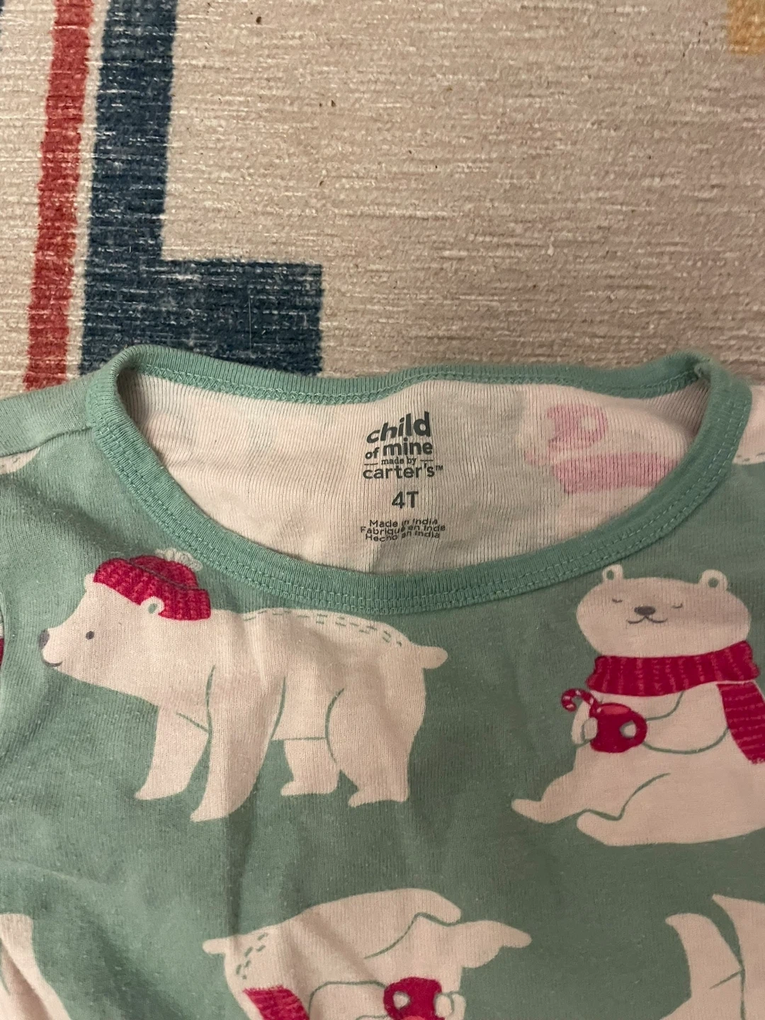 A cute pajama set from Child of Mine made by Carter's in size 4T. It features a light green background with a polar bear pattern. Perfect for your little one!