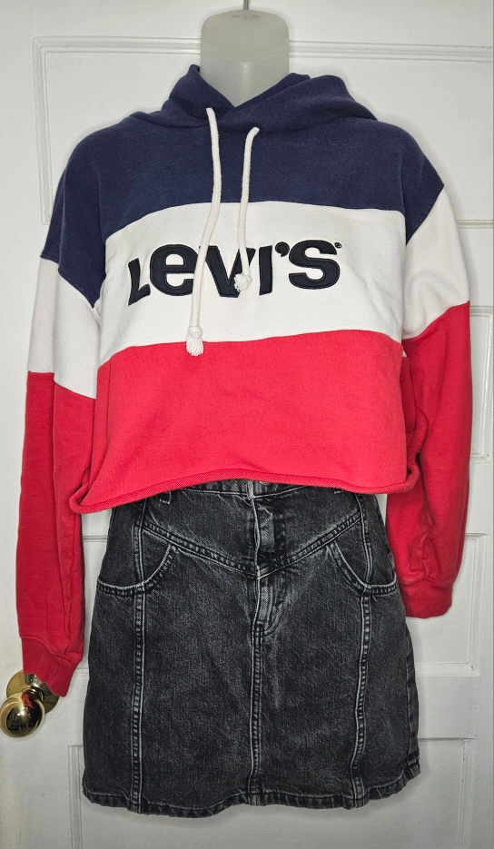Cropped tri-colour sweatshirt. Perfect for the fall weather.