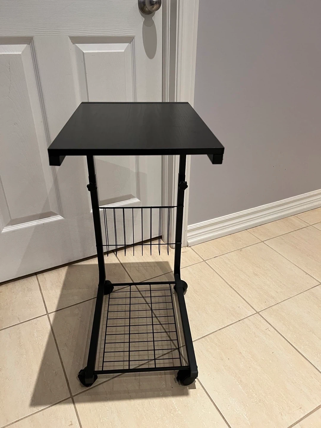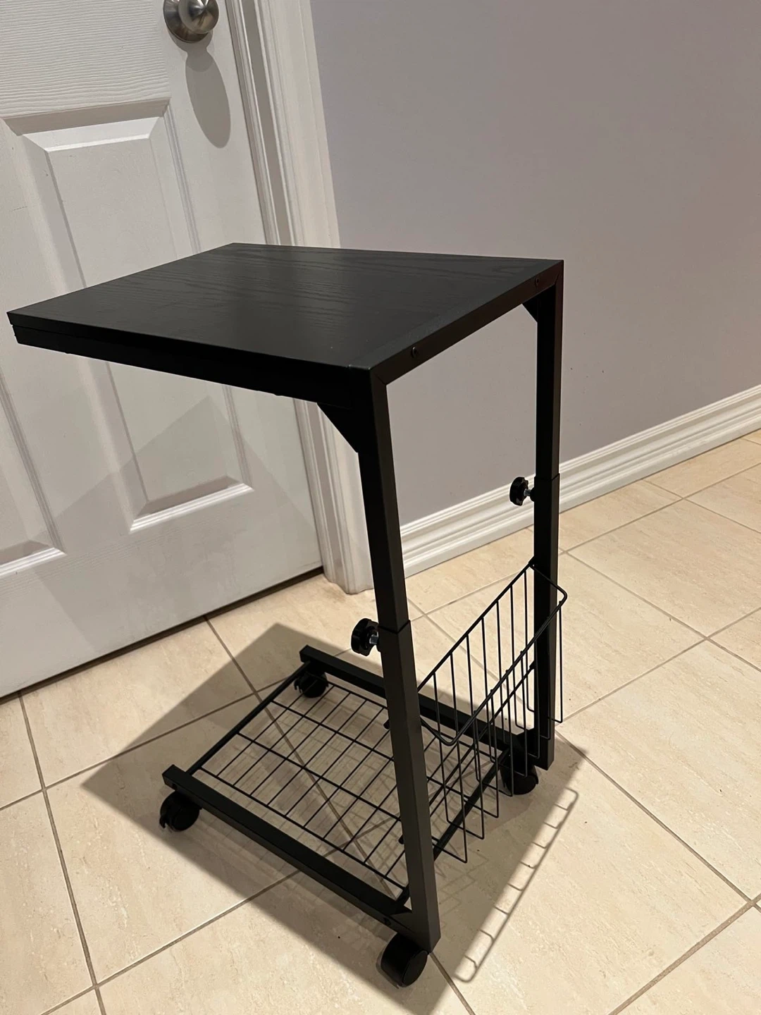 Black Rolling Side Table with Magazine Rack