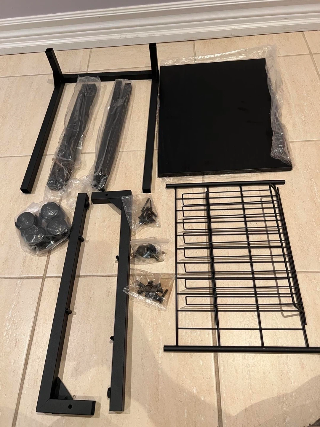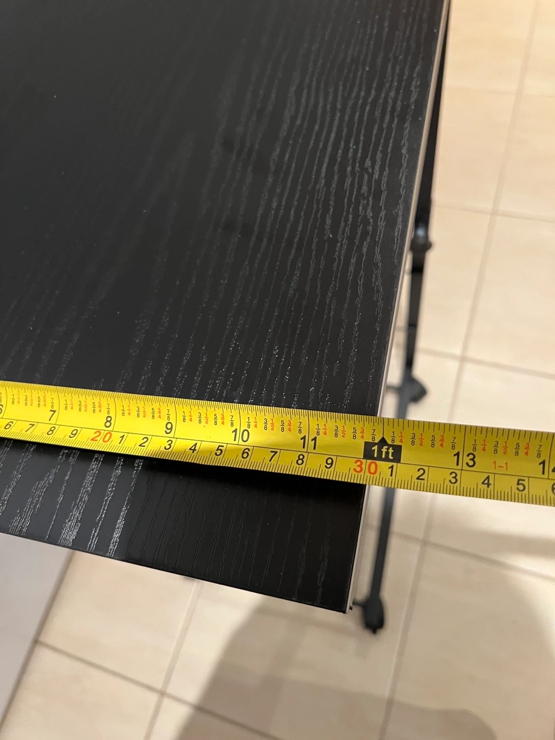 This is a black rolling side table with a convenient magazine rack. It's made with a durable black metal frame and a wood-look top. The table measures approximately 32 inches in height. It features wheels for easy mobility.