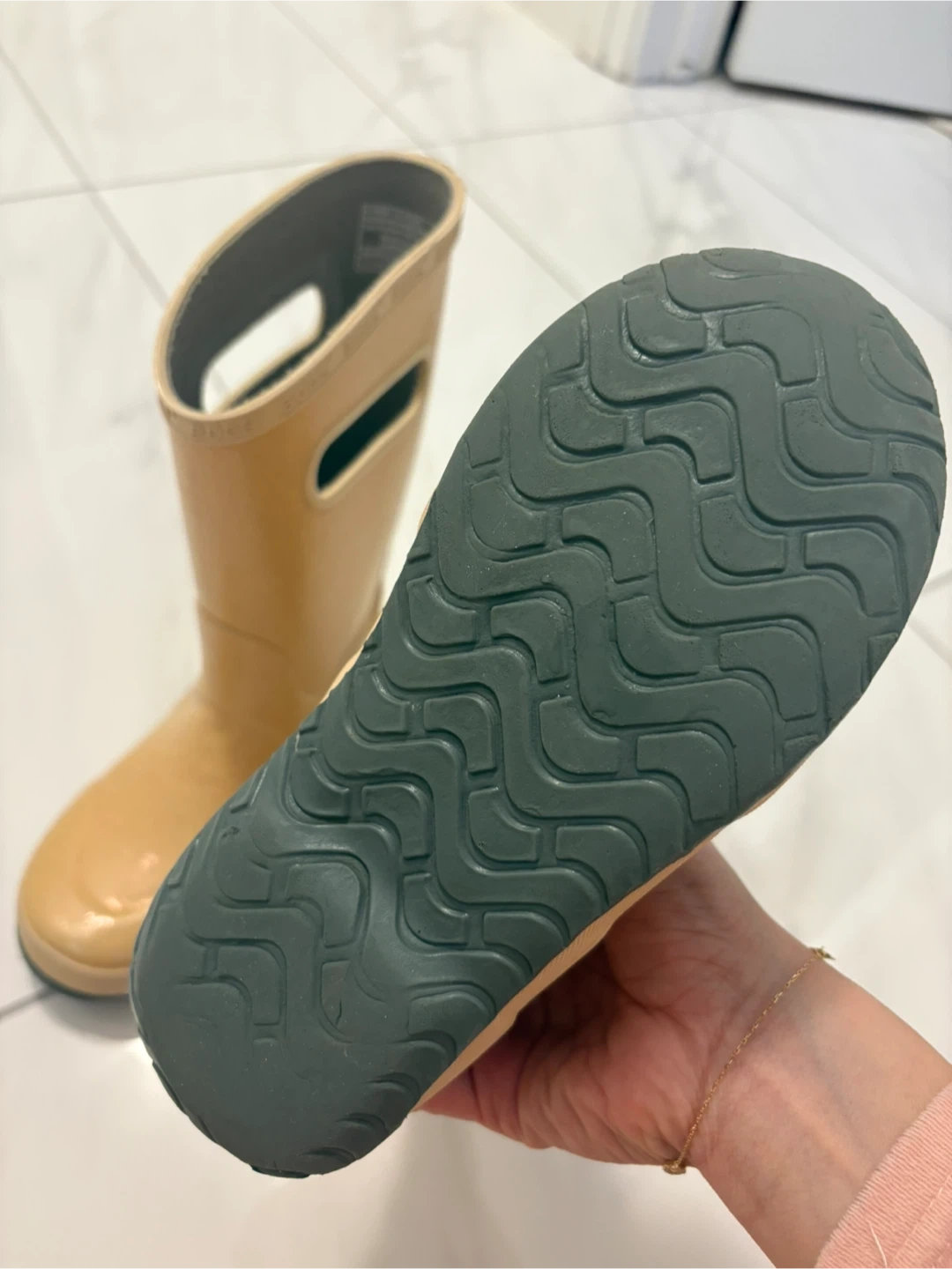 These Bogs rain boots are a sparkling glitter gold pink. They're waterproof and perfect for puddles. Child size1