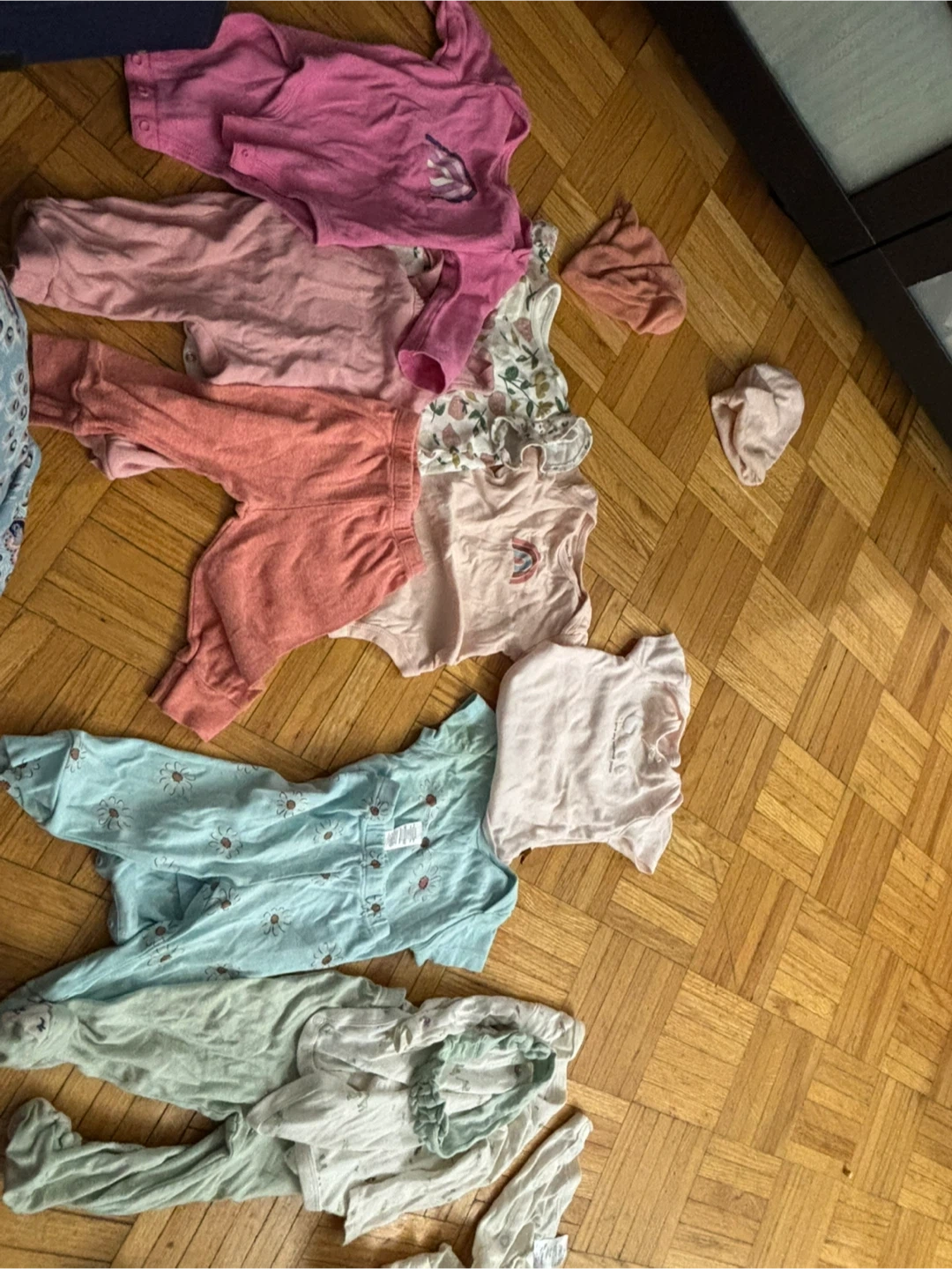 Giving lmixed bundle of baby clothing. Includes onesies, pants, sweaters, and blankets. Great for newborns and infants.