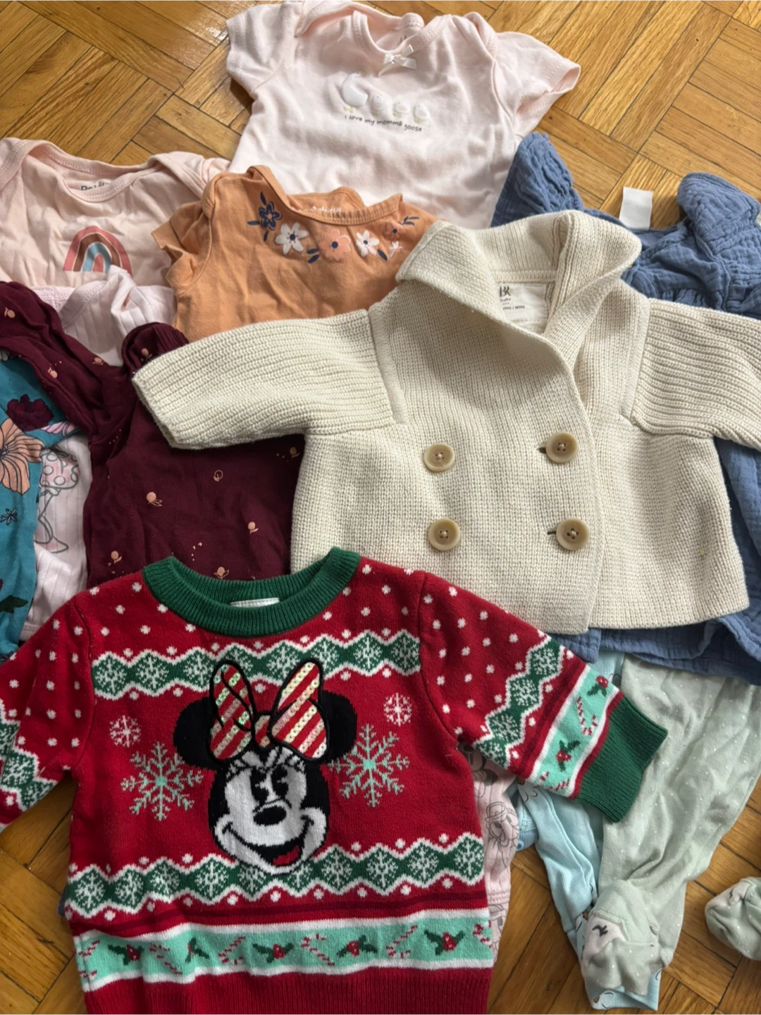 Giving lmixed bundle of baby clothing. Includes onesies, pants, sweaters, and blankets. Great for newborns and infants.