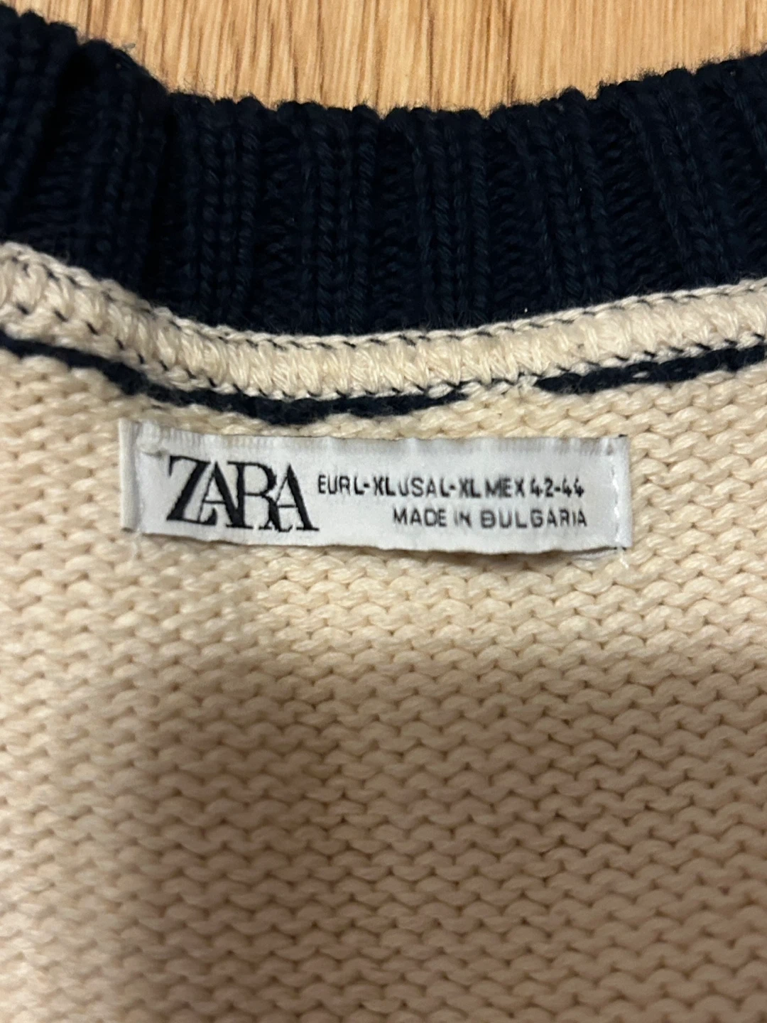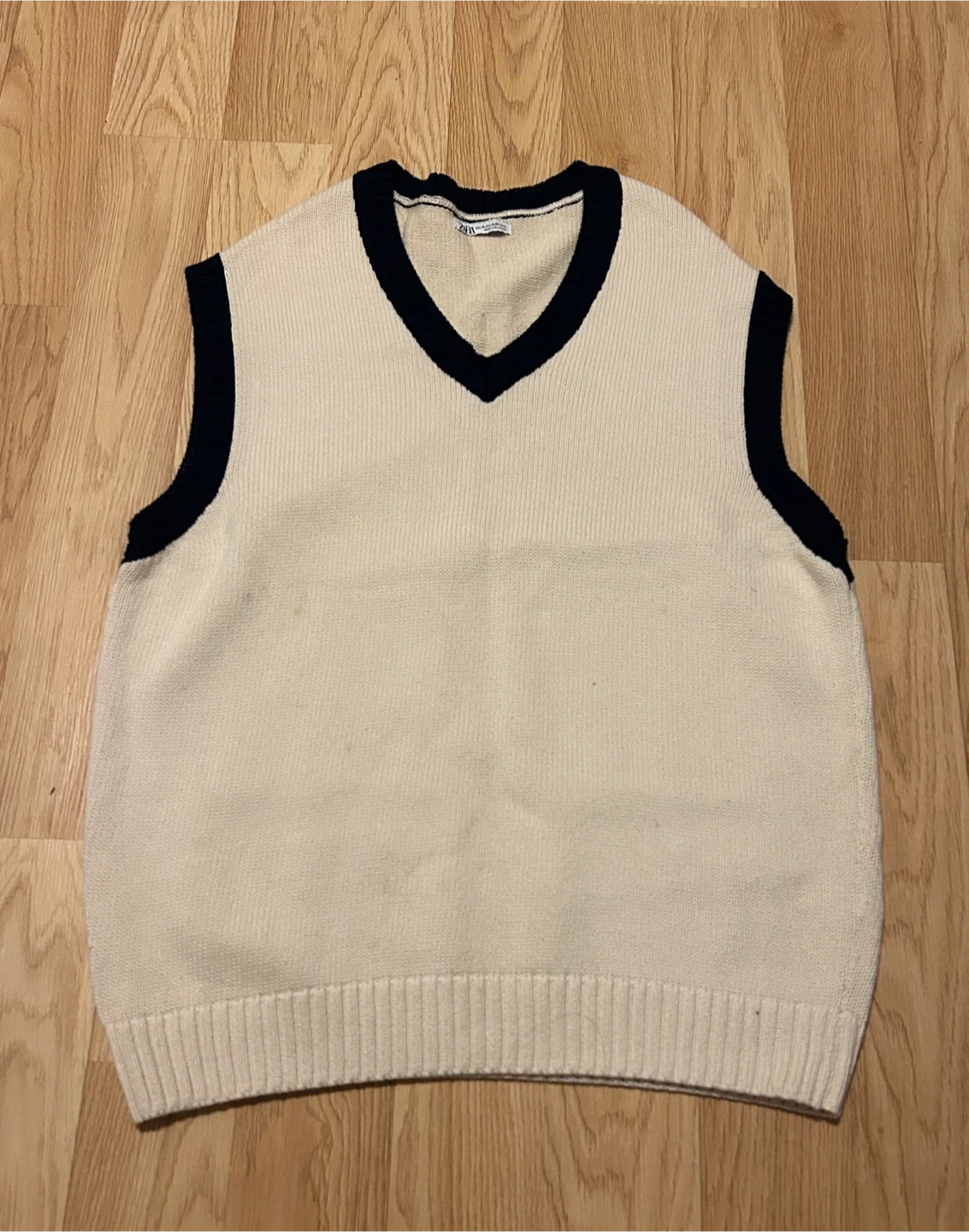 Buy & SellZARA Sweater Vest Cream/Navy XLZARA Sweater Vest Cream/Navy XL$14Cream knit V-neck sweater vest from ZARA. It features navy trim on the neckline and armholes. Great for layer in an everyday or work settingConditionLike newSizeXLBrandZARAWHERE TO MEETCheck LocationView MapSELLERverifiedLillianBay Street Corridor650 reviews0 chats·0 favorites·6 viewsSEND CHAT TO SELLERHi Lillian! I’m interested in your listing.Hi Lillian! I’m interested in your listing.Get the Karrot app to chatSign In to chat