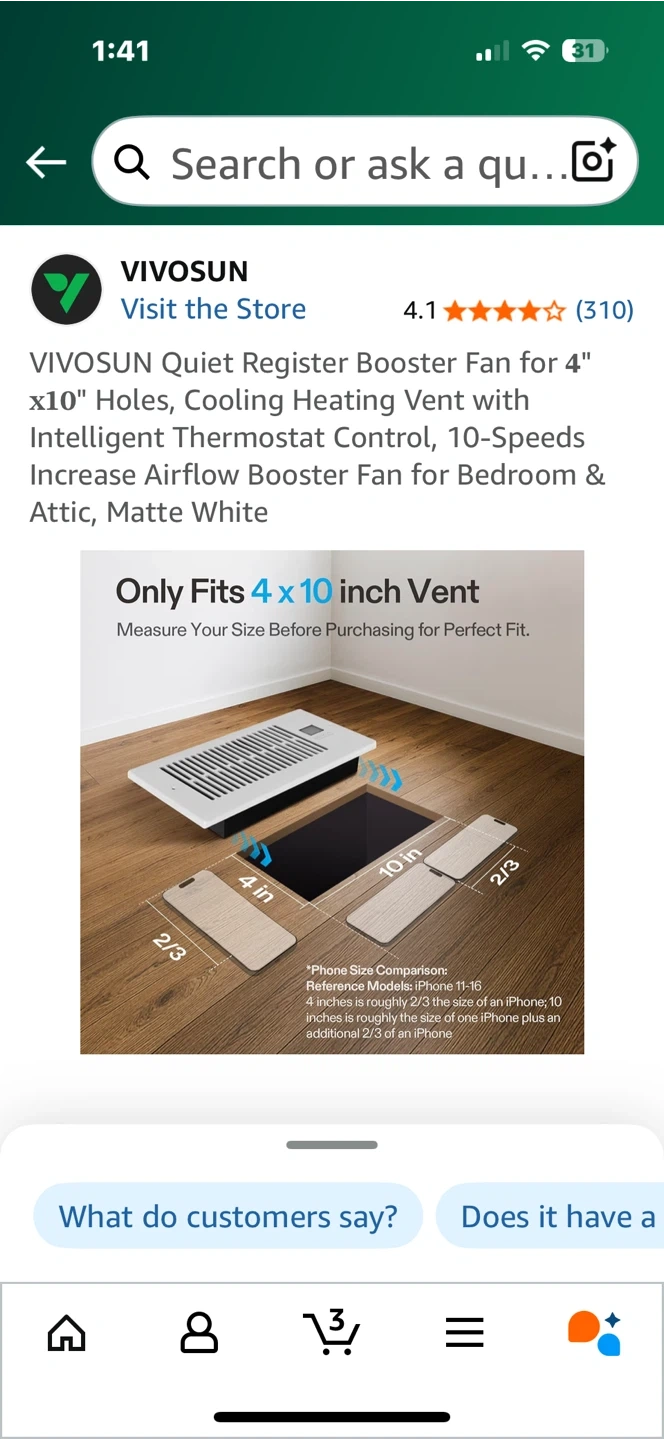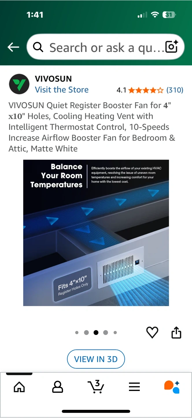 Looking to improve airflow in your home? I'm selling a VIVOSUN Quiet Register Booster Fan designed for 4" x 10" holes. It's a cooling and heating vent with intelligent thermostat control, offering 10 speeds to increase airflow. Perfect for bedrooms and attics!
