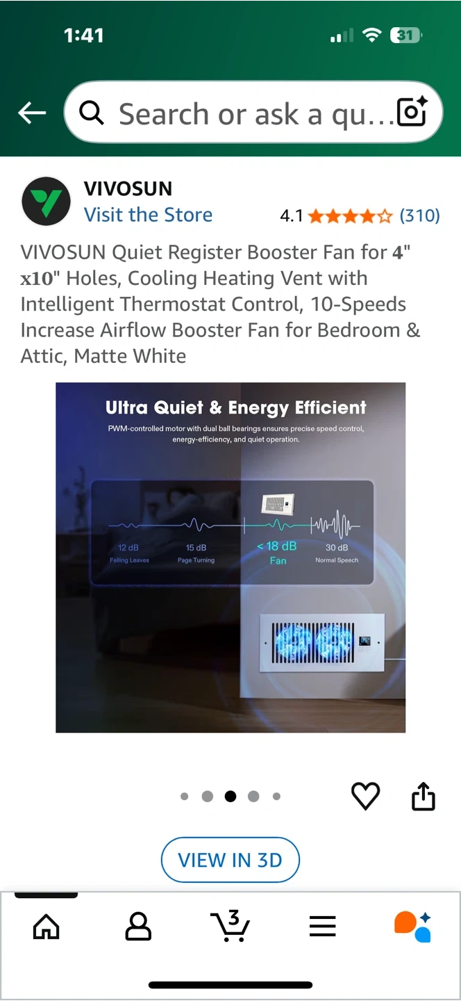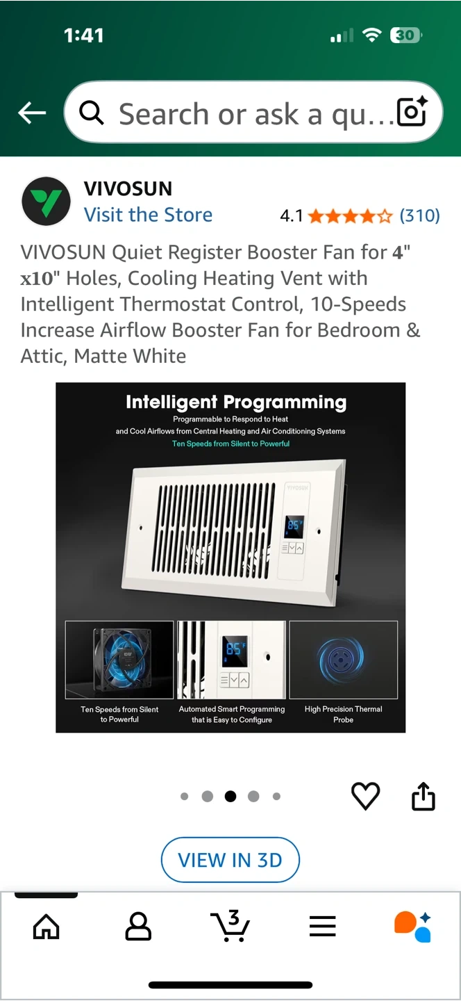 Looking to improve airflow in your home? I'm selling a VIVOSUN Quiet Register Booster Fan designed for 4" x 10" holes. It's a cooling and heating vent with intelligent thermostat control, offering 10 speeds to increase airflow. Perfect for bedrooms and attics!