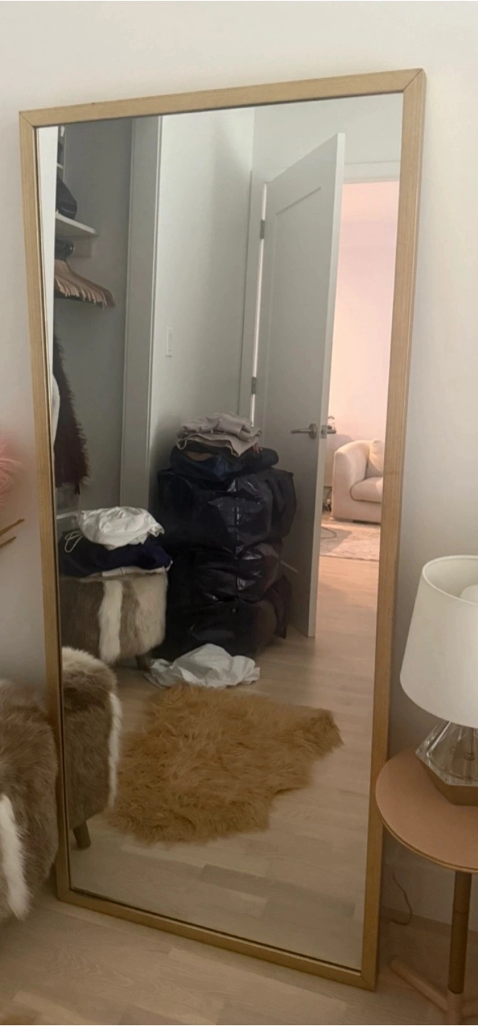 Stylish full-length mirror with a sleek light gold frame—perfect for adding a touch of warmth to any room. Great for closets, bedrooms, or entryways. Sturdy and in excellent condition with no cracks or chips.