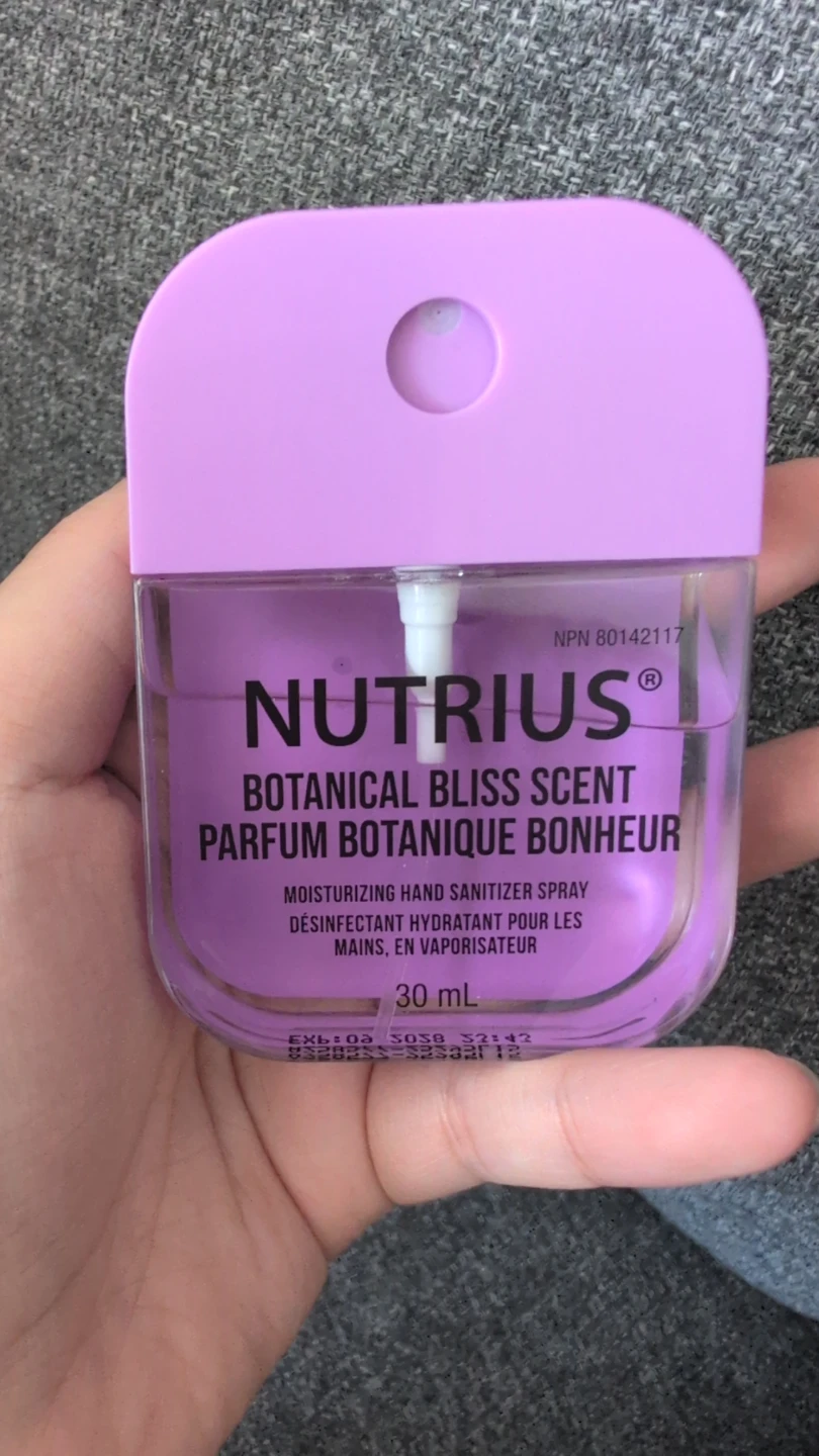 This Nutrius hand sanitizer spray comes in a 30ml bottle with a Botanical Bliss scent. It contains 70% Ethyl alcohol for effective sanitization. Apply liberally over all hand surfaces and rub thoroughly until dry.