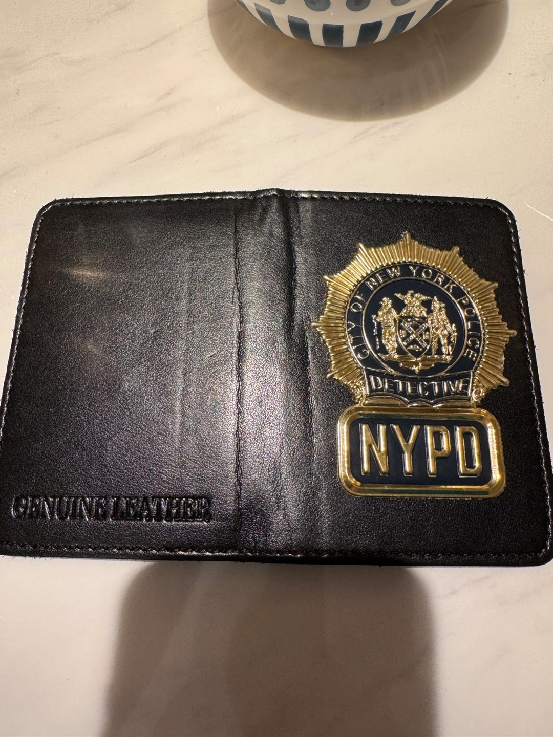 Genuine leather badge holder. Features NYPD detective badge and an ID card slot. This card is for collectible purposes only Excellent condition.