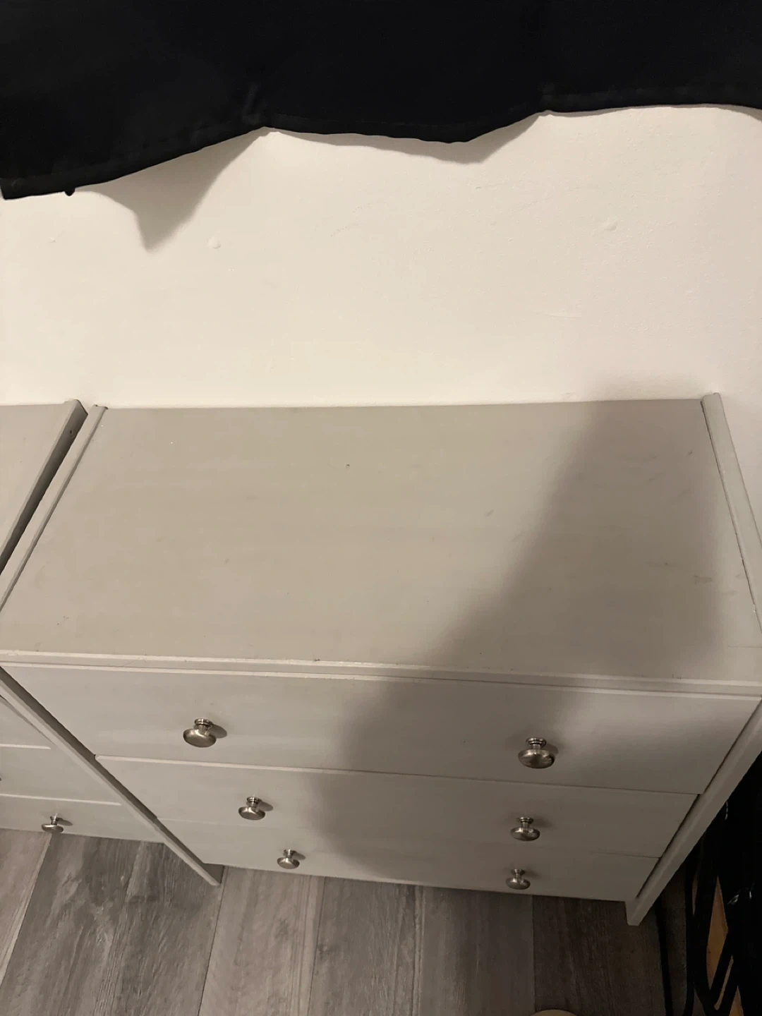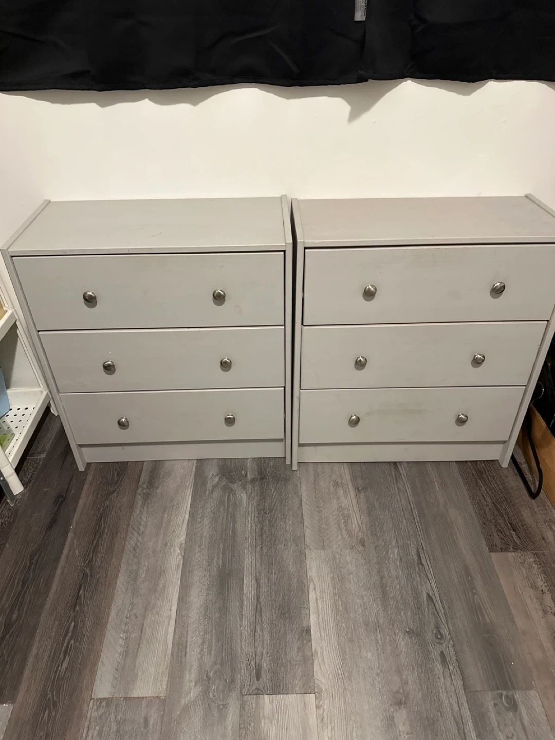 Selling a set of two matching dressers. They're a light grey colour and each has three drawers. Great for adding storage to any room! From IKEA they can be repaint again sign of use one for & 30 or two for & 50