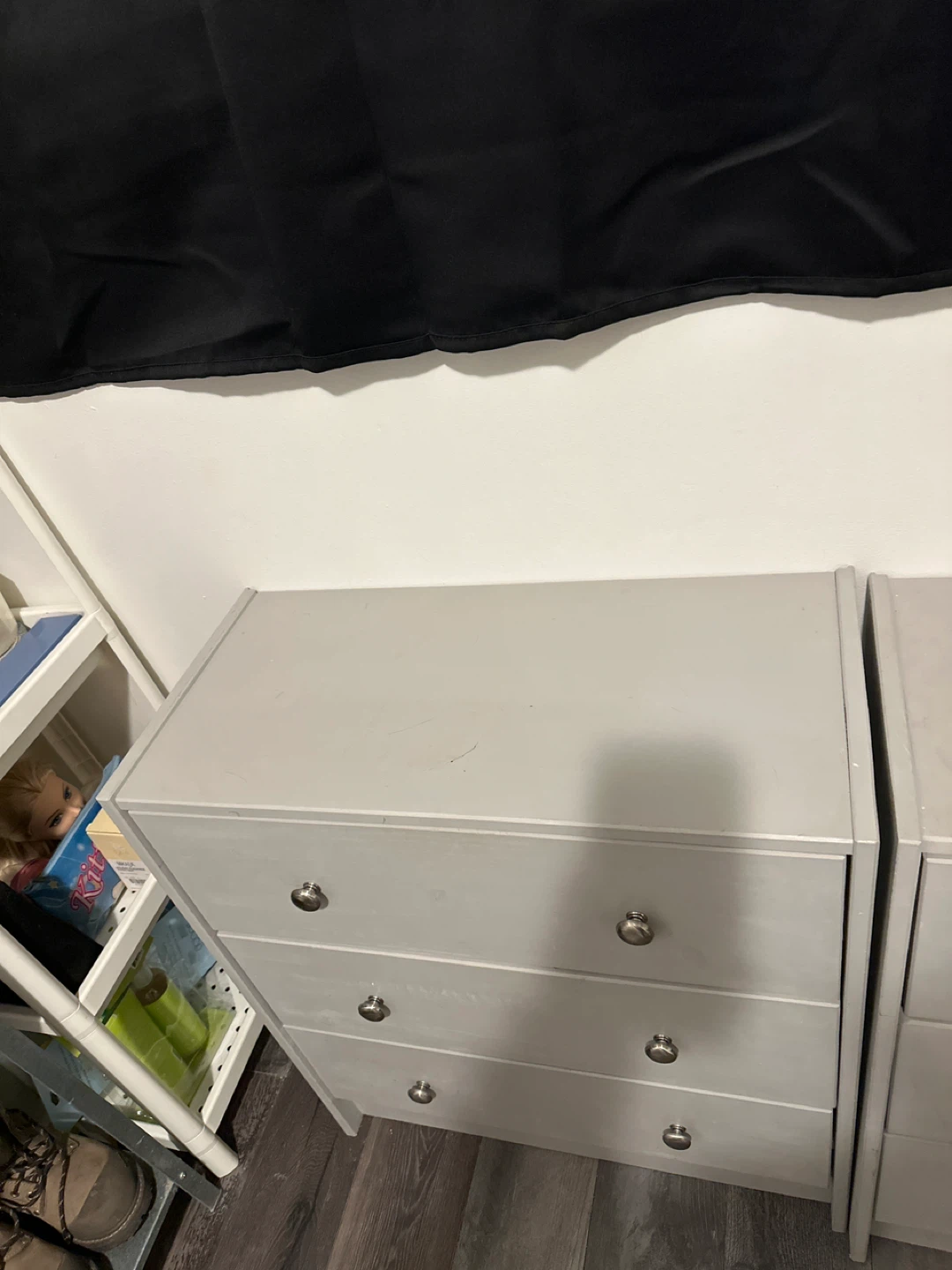 Selling a set of two matching dressers. They're a light grey colour and each has three drawers. Great for adding storage to any room! From IKEA they can be repaint again sign of use one for & 30 or two for & 50