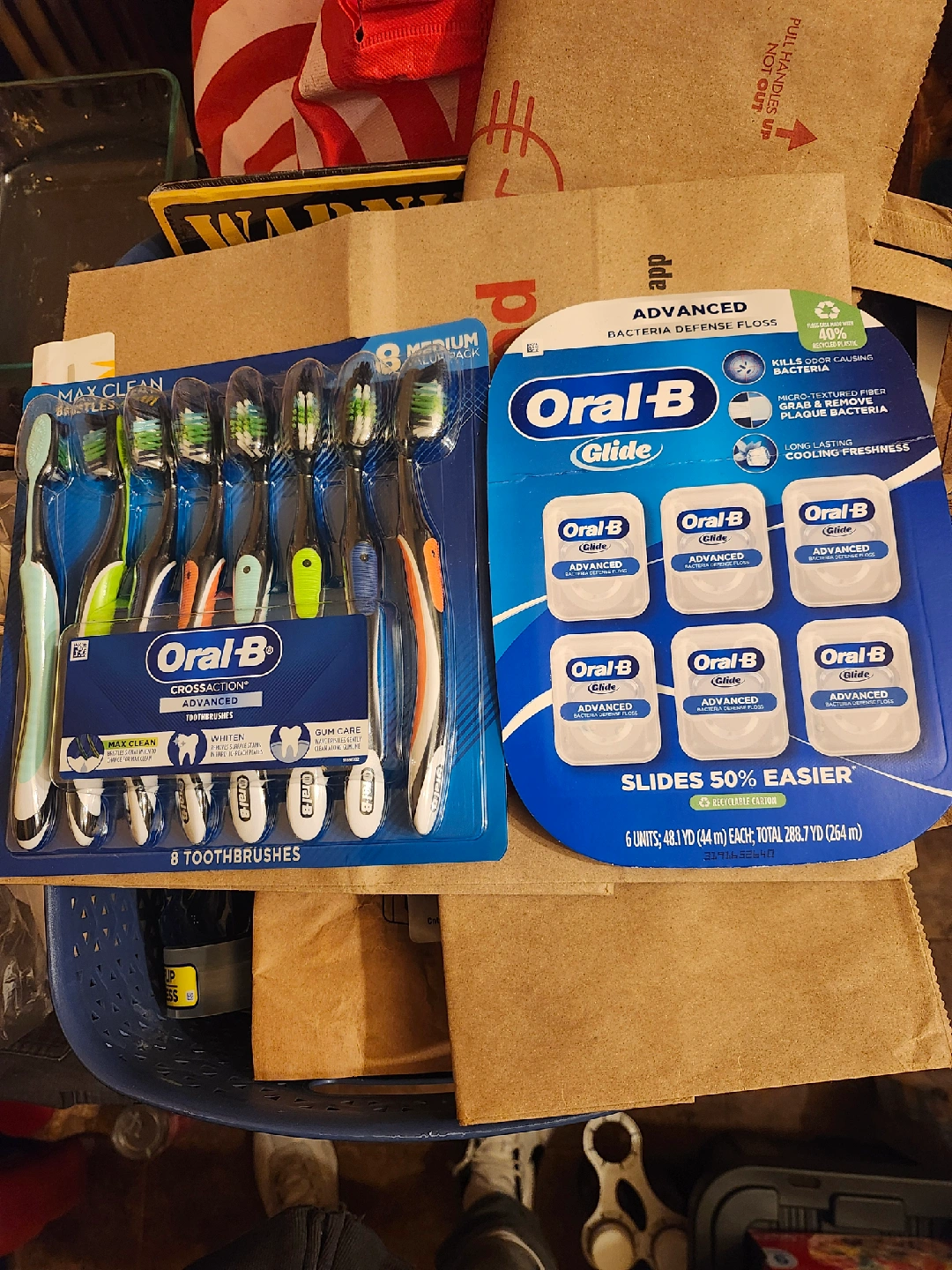 Selling a pack of Oral-B CrossAction Advanced toothbrushes (8 count) and Oral-B Glide Advanced floss (6 units)