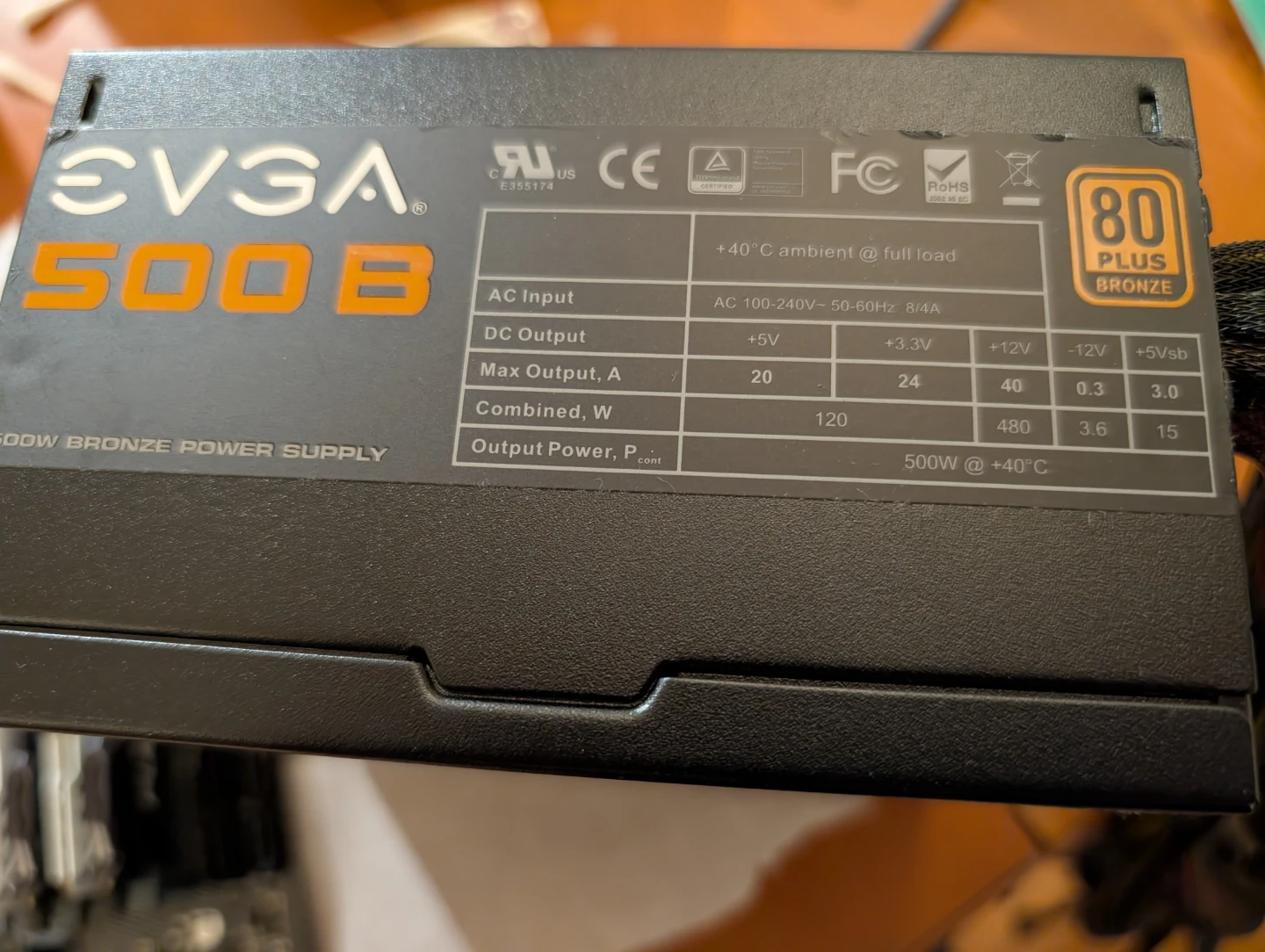 Power Supply: EVGA 500 B1 500 W 80+ Bronze Certified ATX Power Supply