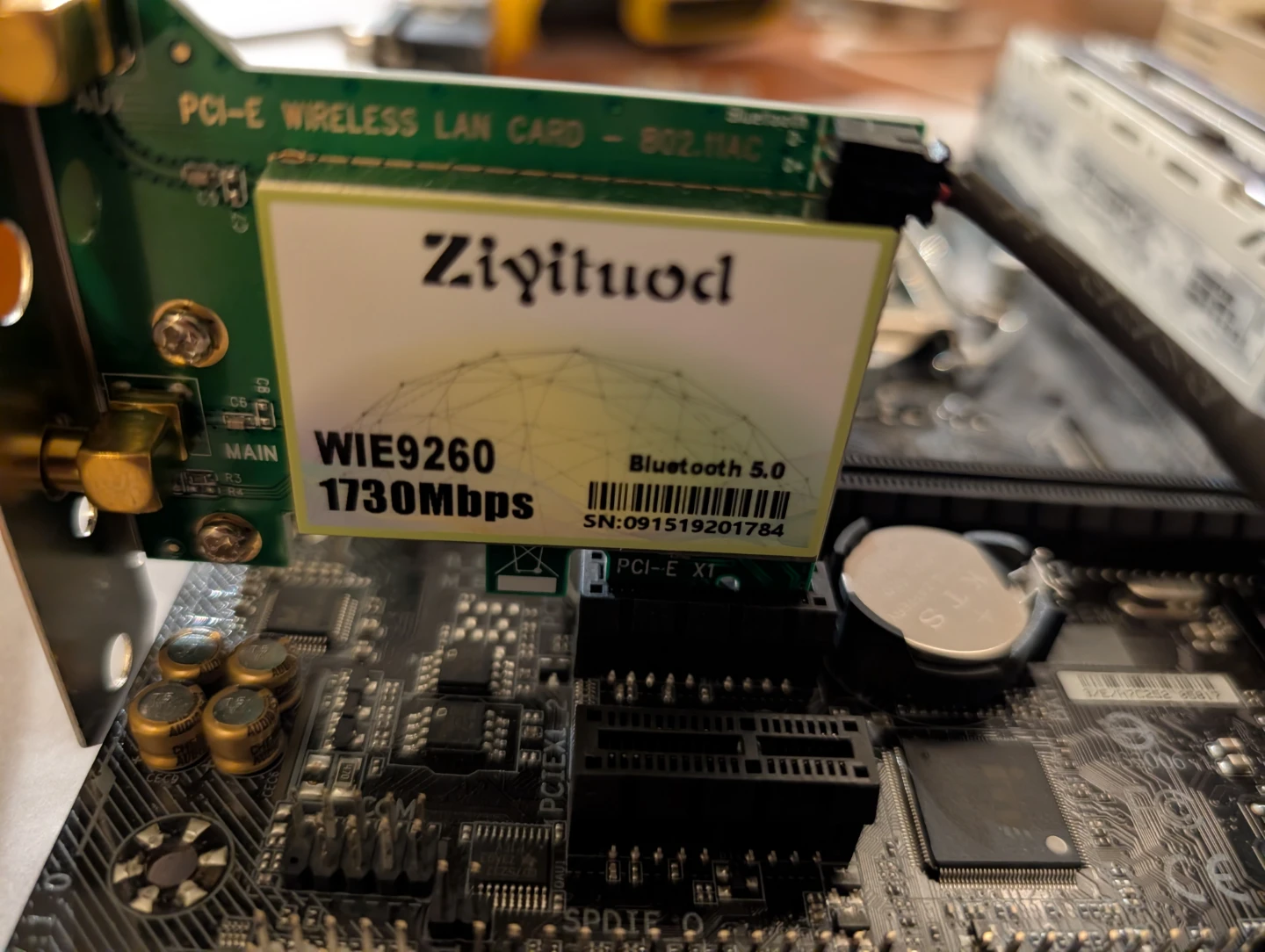 Wi-Fi card: Ziyituod WIE 9260 dual band Wi-Fi and Bluetooth 5.0