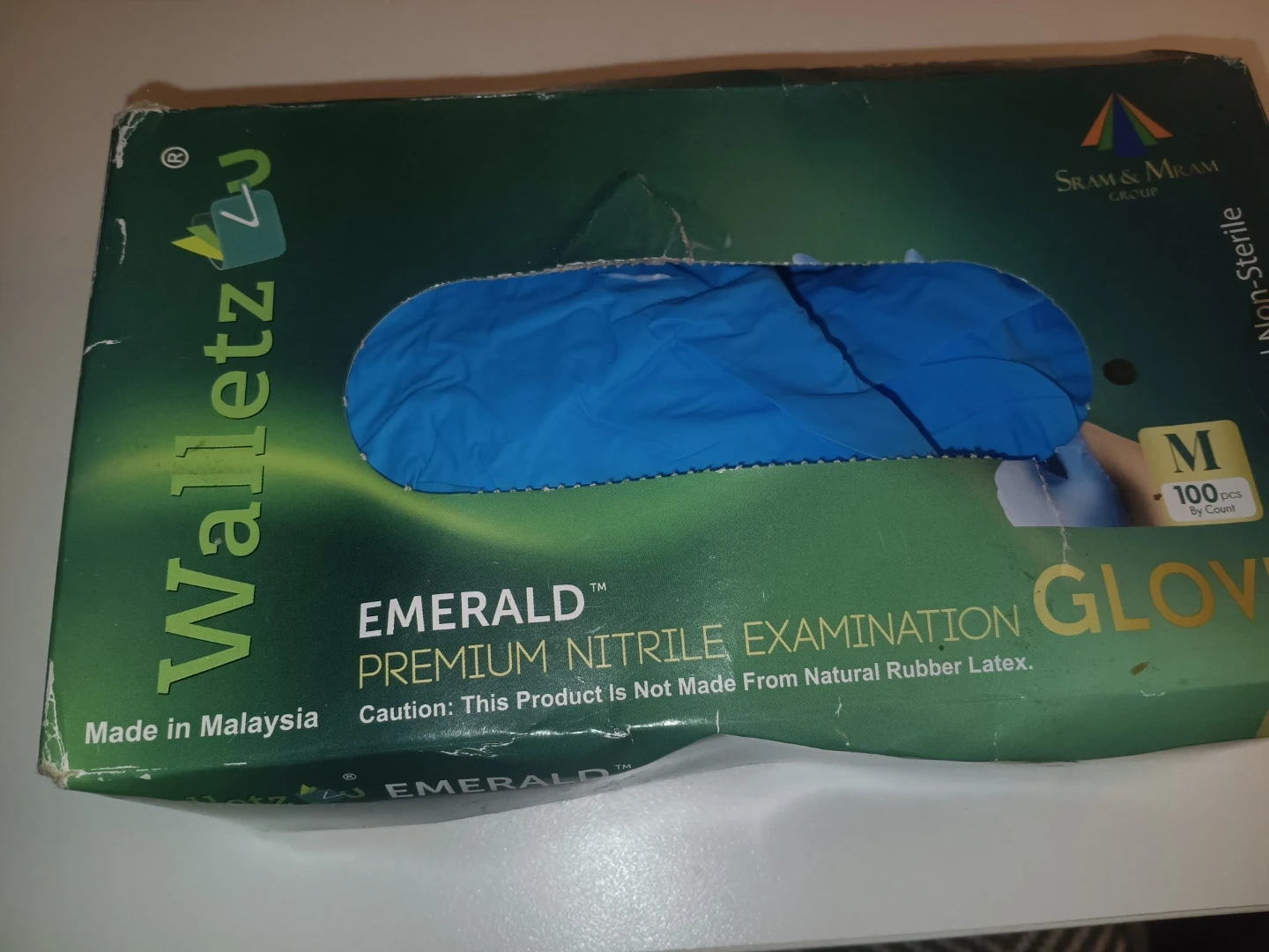 Emerald Premium Nitrile Examination Gloves. These are non-sterile and made in Malaysia. They come in size medium and a box contains 100 pieces. The product is not made from natural rubber latex.