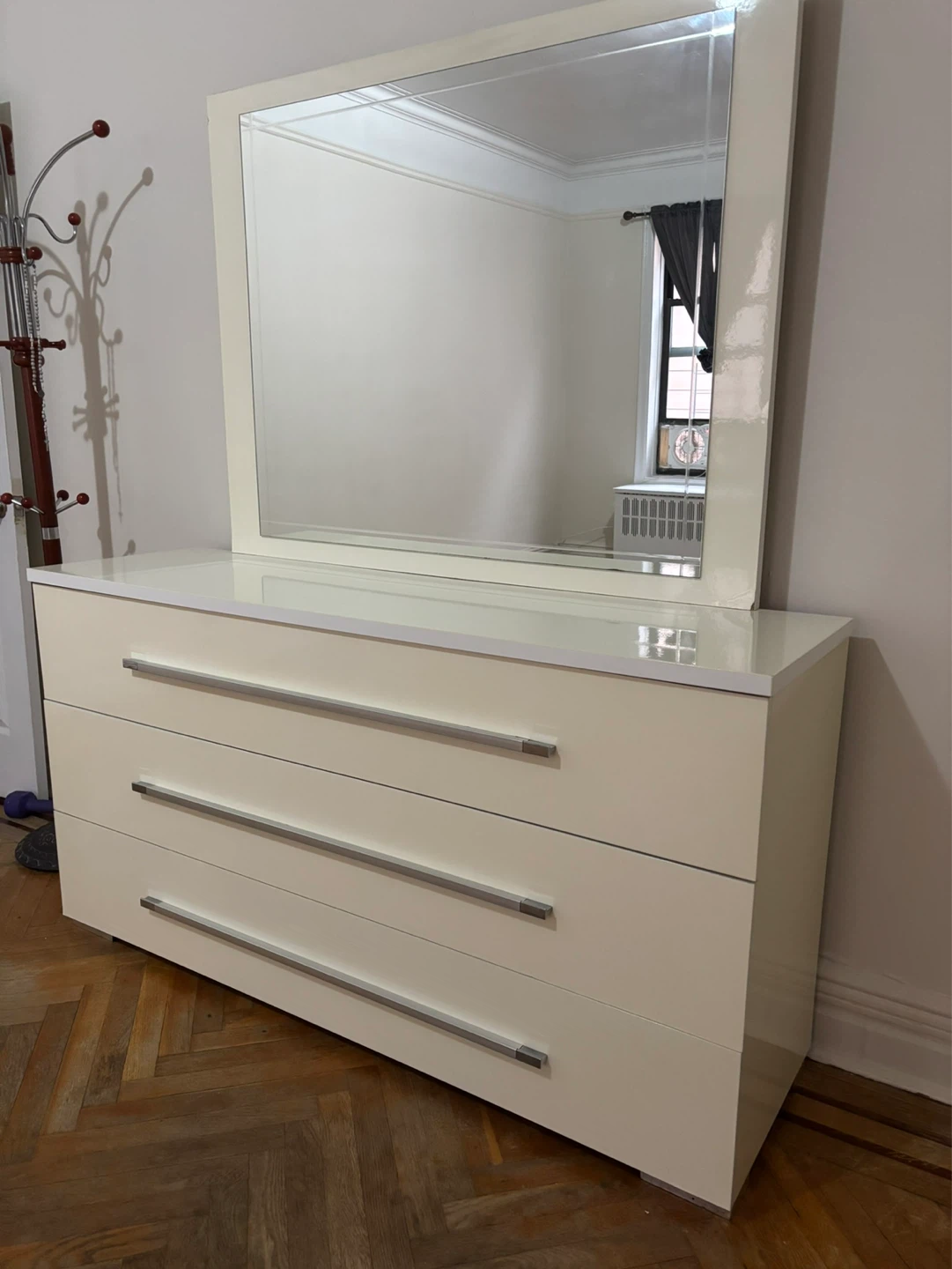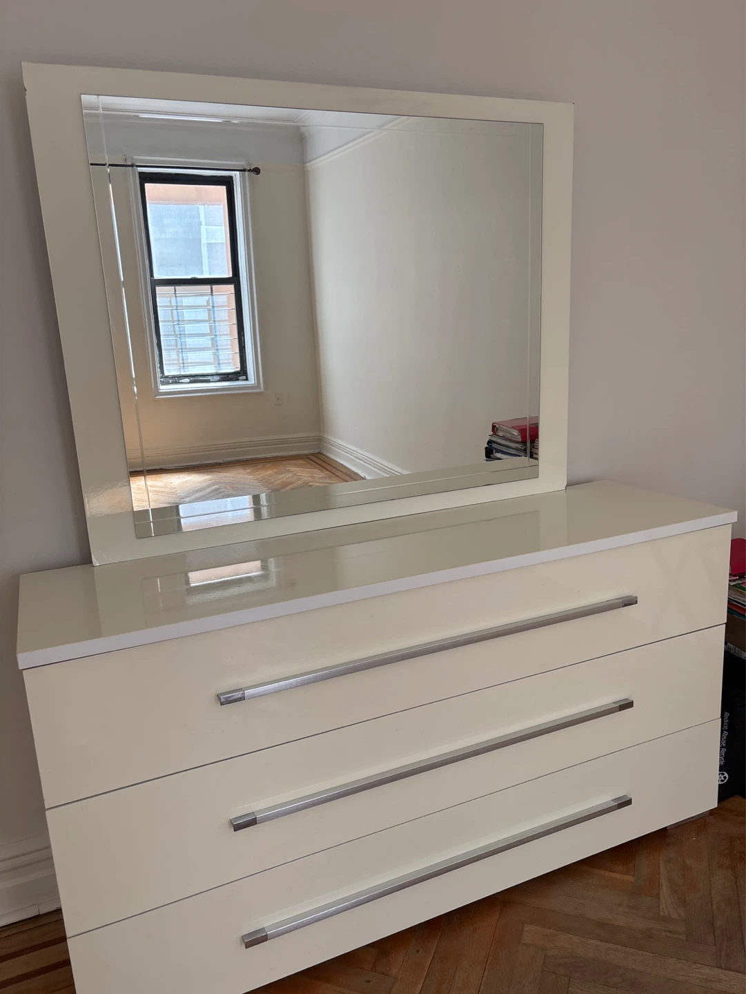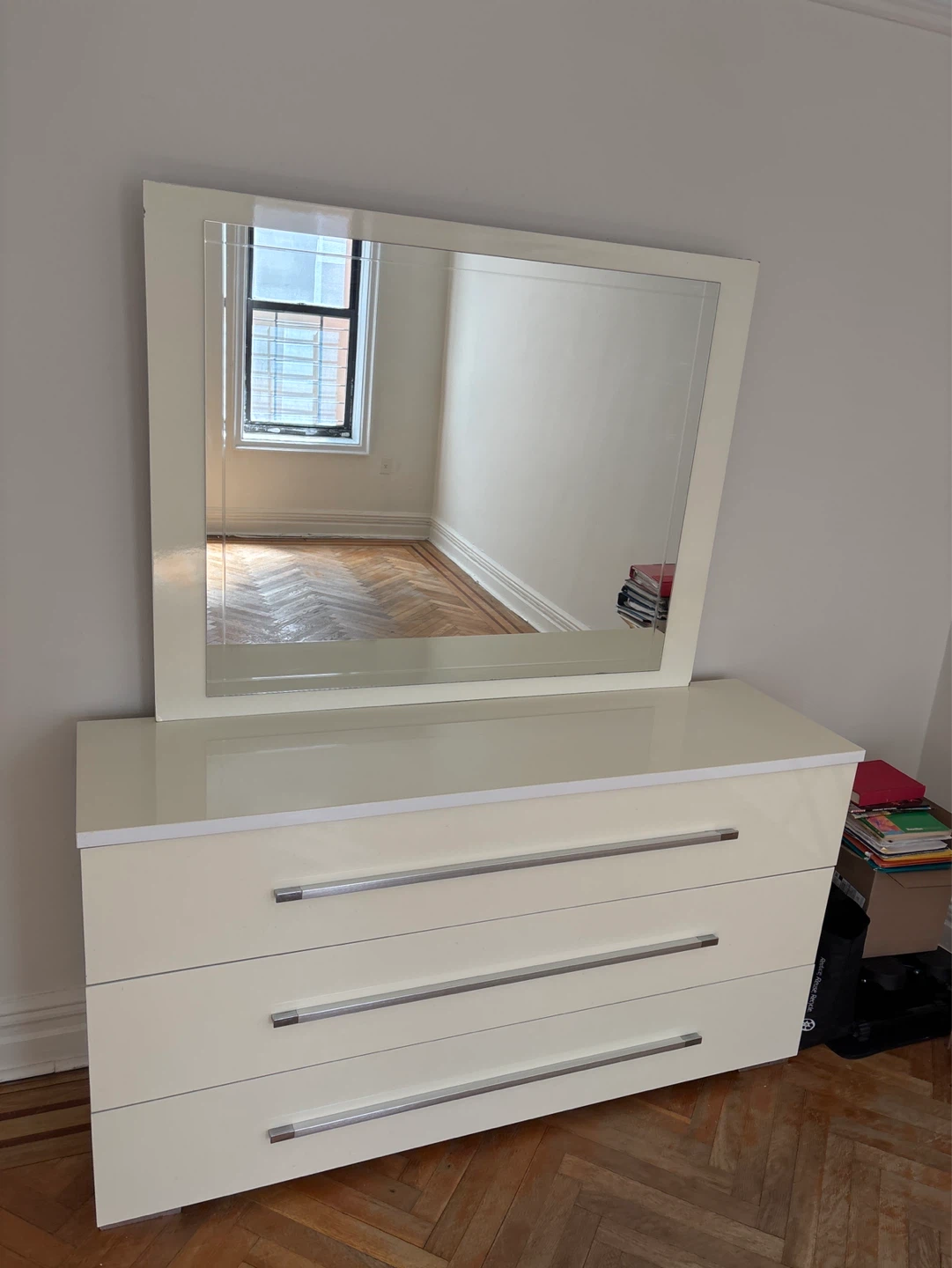 1 / 41 / 4Buy & SellWhite 3-Drawer Dresser with MirrorWhite 3-Drawer Dresser with Mirror$160Shiny white 3-drawer dresser with silver handles. It includes a large mirror attached to the top. Drawer fronts are clean and smooth.WHERE TO MEETInwoodView MapSELLERverifiedEvelynInwood761 review6 chats·5 favorites·123 viewsSEND CHAT TO SELLERHi Evelyn! I’m interested in your listing.Hi Evelyn! I’m interested in your listing.Get the Karrot app to chatSign In to chat