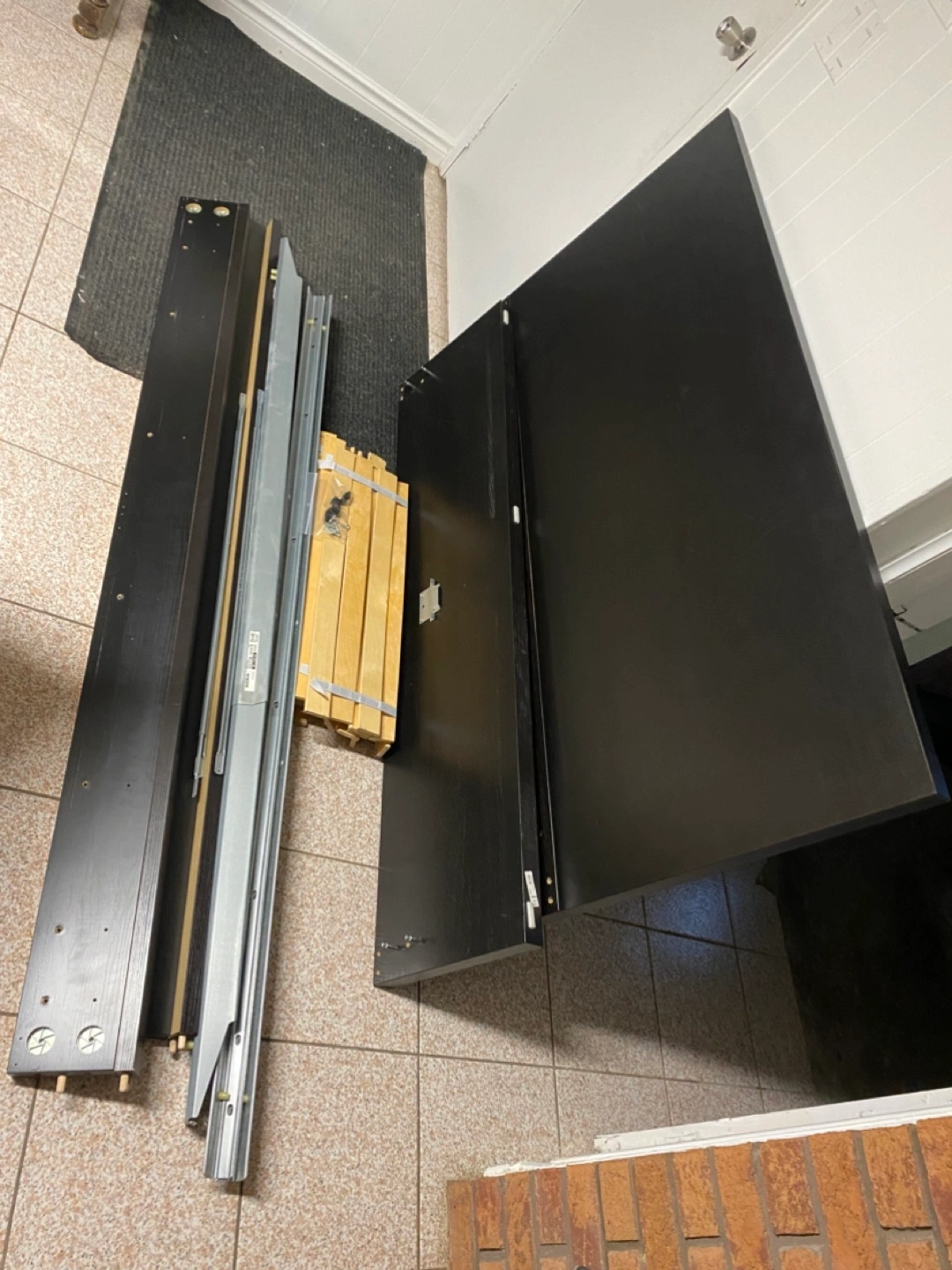The bedframe is dismounted for easy transportation, the drawers are still together. 4 in total. Slats also included.