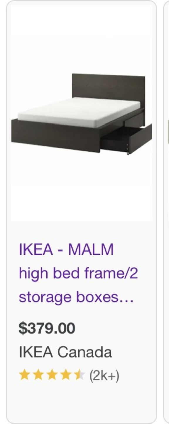 IKEA MALM Bed Frame with Storage Boxes - size Full/Double