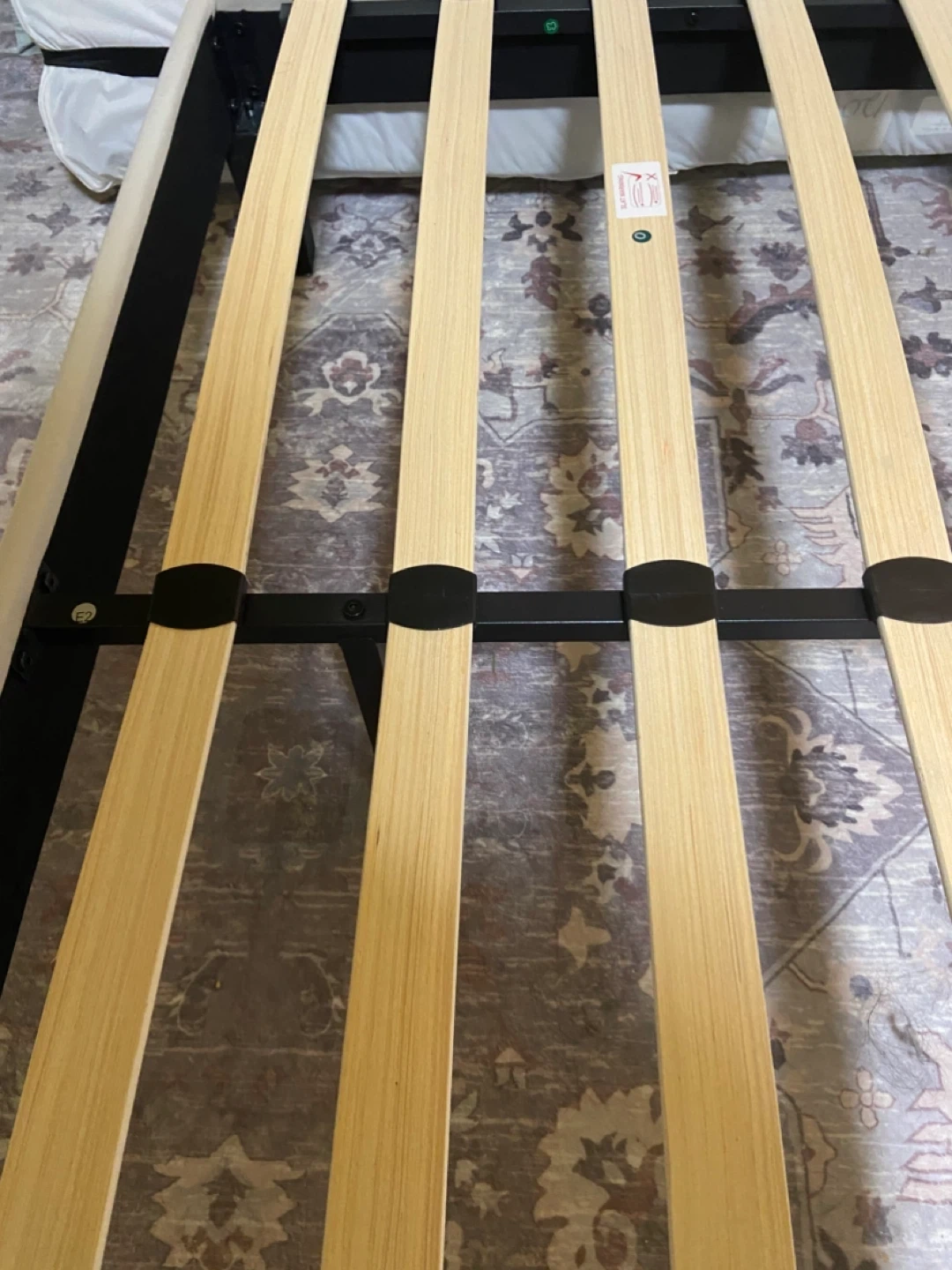 This is a light creamy ivory upholstered headboard and bed frame. It features a slat system for mattress support. Includes the frame and headboard, mattress not included.