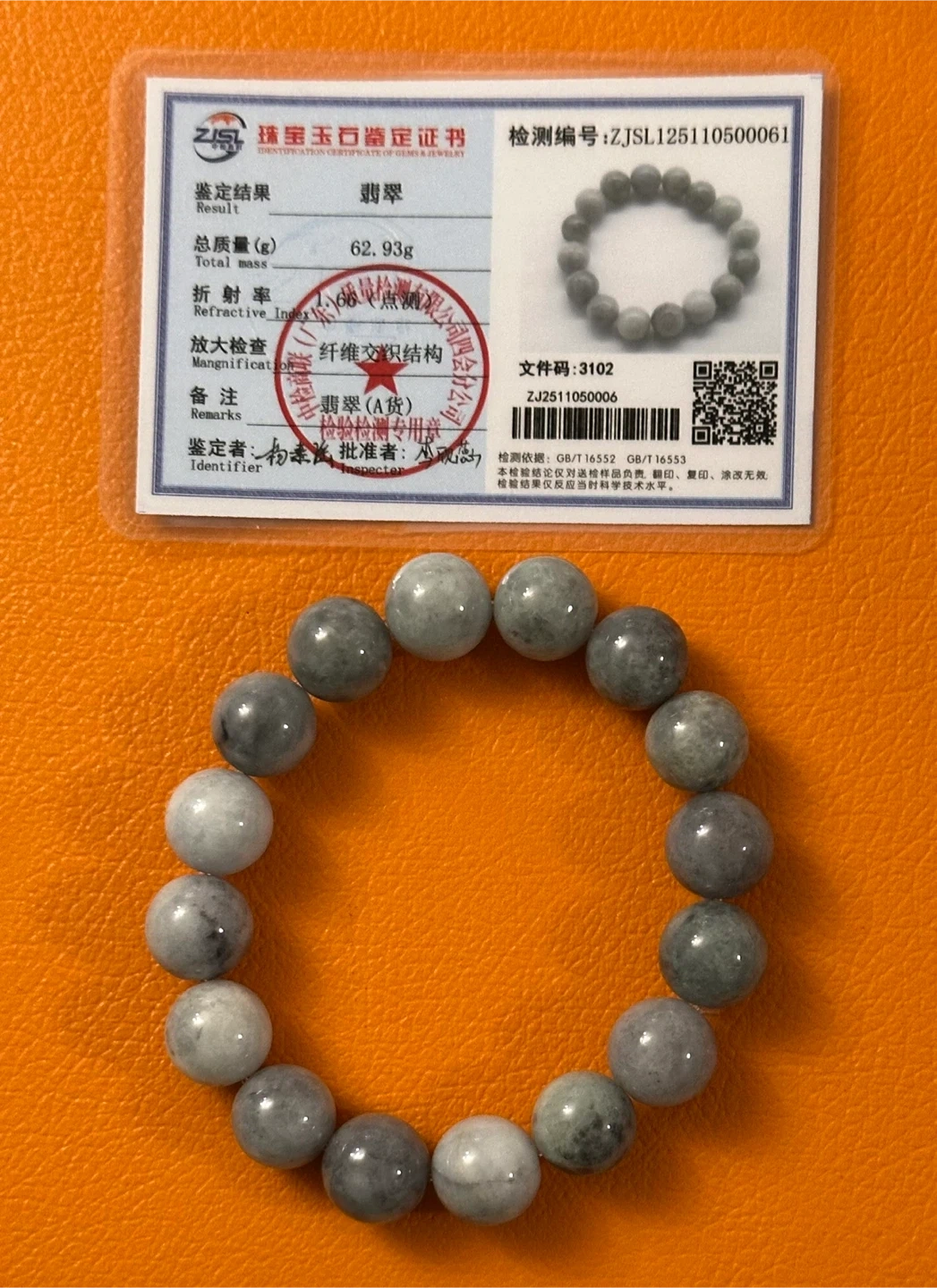 Selling a high-quality authentic Wuji Jade bead bracelet. The beads are 12.6 mm in size. With Certificate.