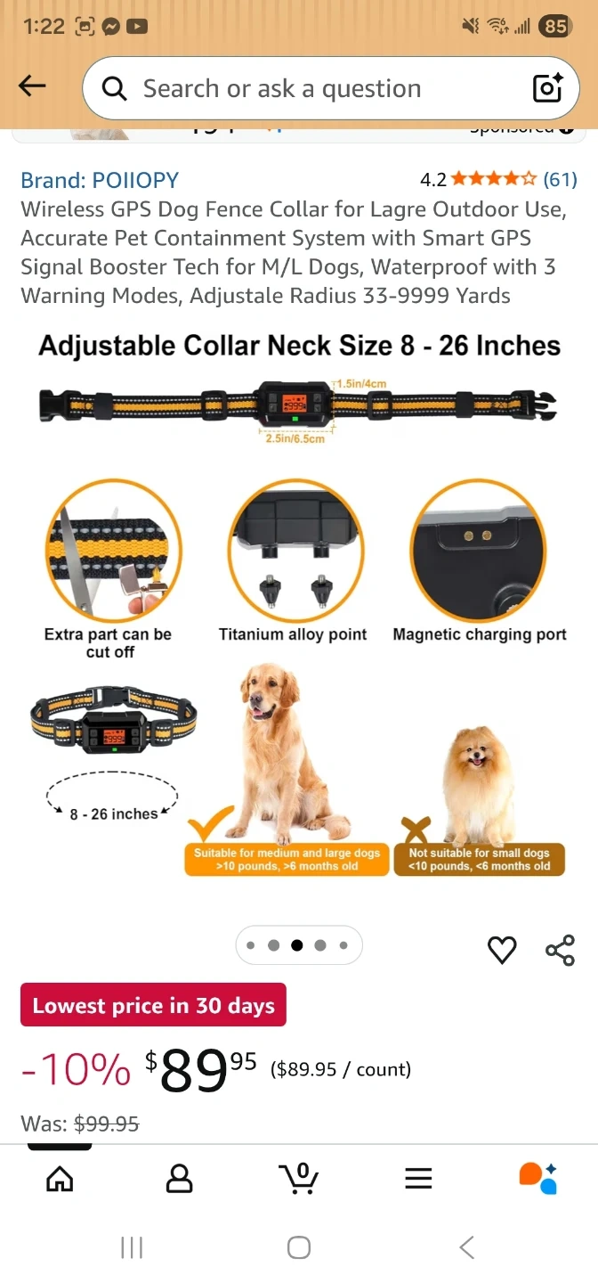 This wireless GPS dog fence system comes with a collar and training flags. It's waterproof and features adjustable radius settings. The collar fits neck sizes from 8 to 26 inches.