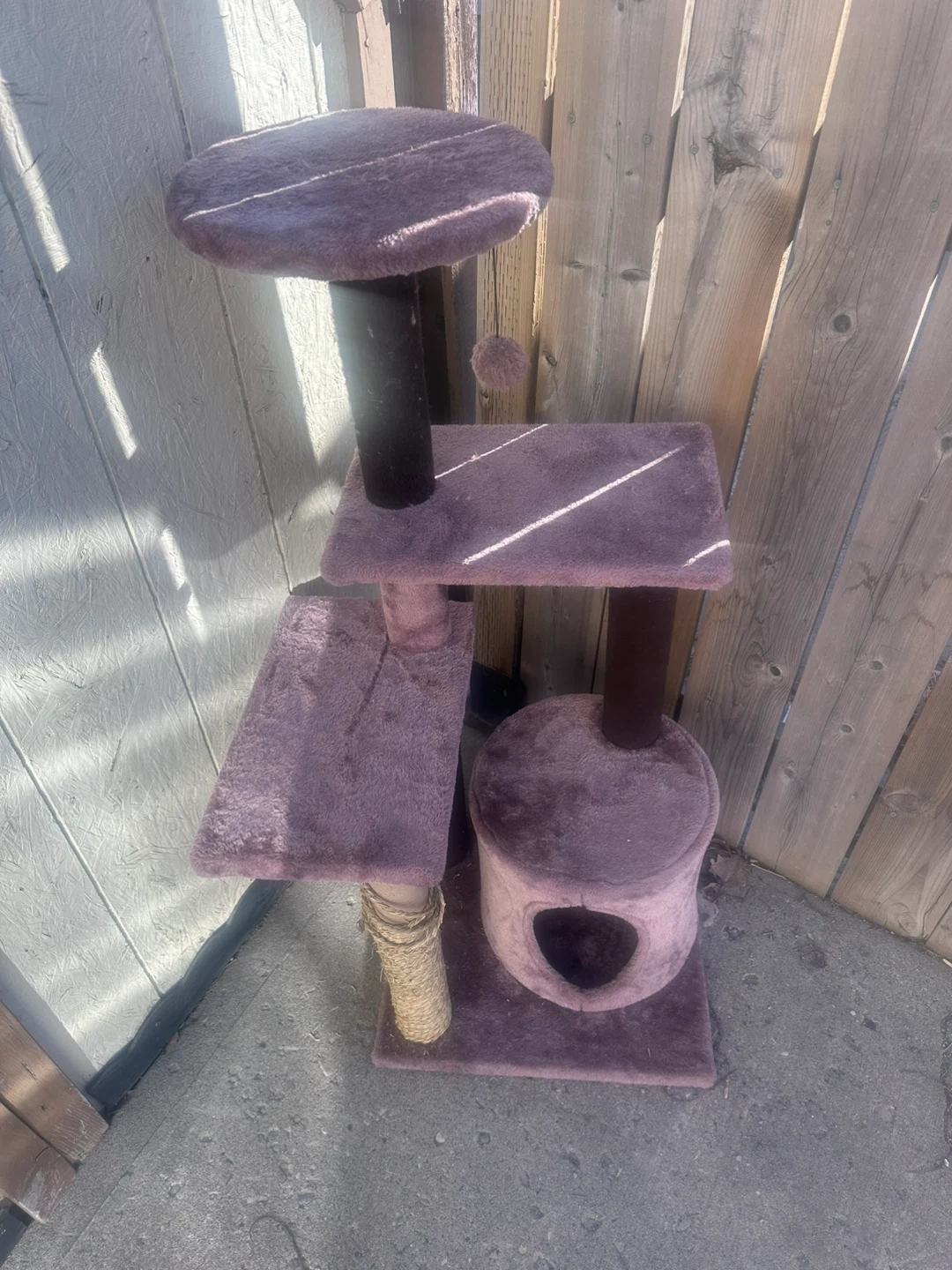 This cat tree condo has multiple levels and a cozy hideaway for your feline friend. It features a sisal-wrapped scratching post for nail health. Its plush covering provides comfort for lounging and playing. It's a great addition for any cat owner!
