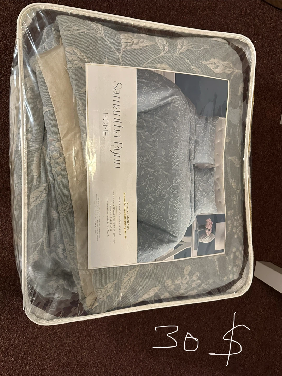 ๐๏ธ Samantha Pynn Eucalyptus Queen Duvet Cover - Designer grey/green floral, gently used/clean (no shams). $30