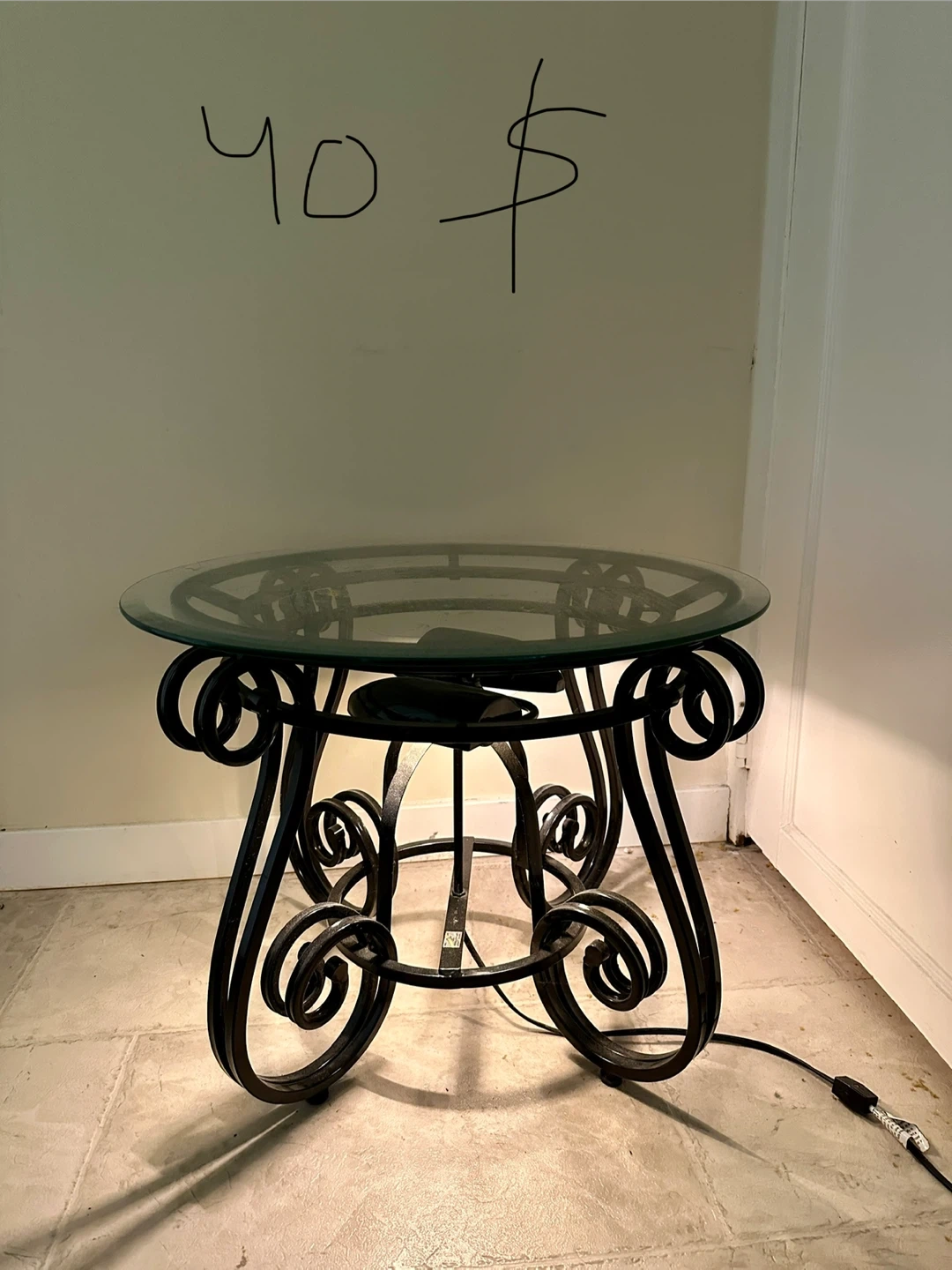 ๐๏ธ Black Glass Coffee Table w/ Built-in LED Lights - Fancy scrolled base, lights work (~24โ tall). $40