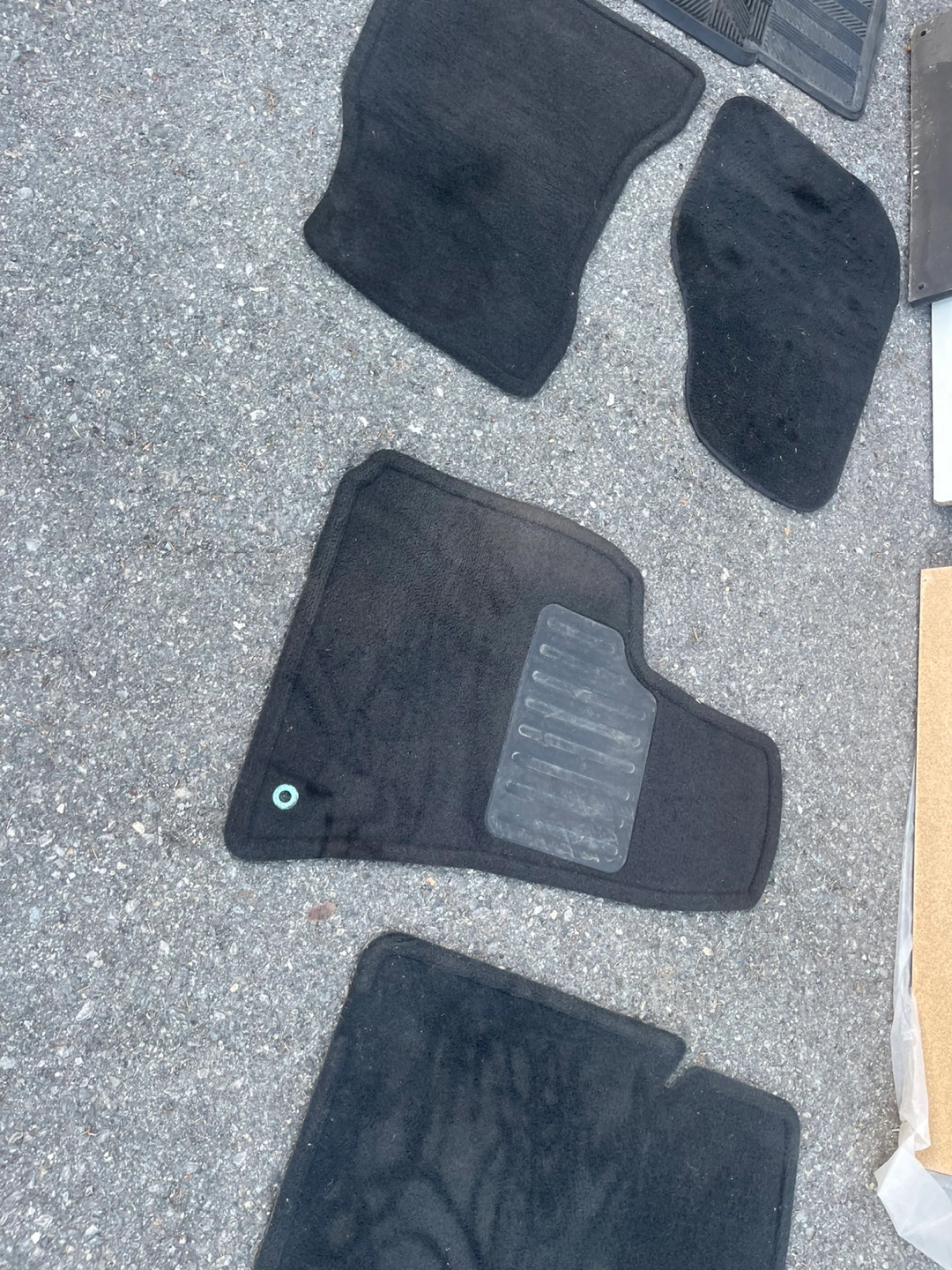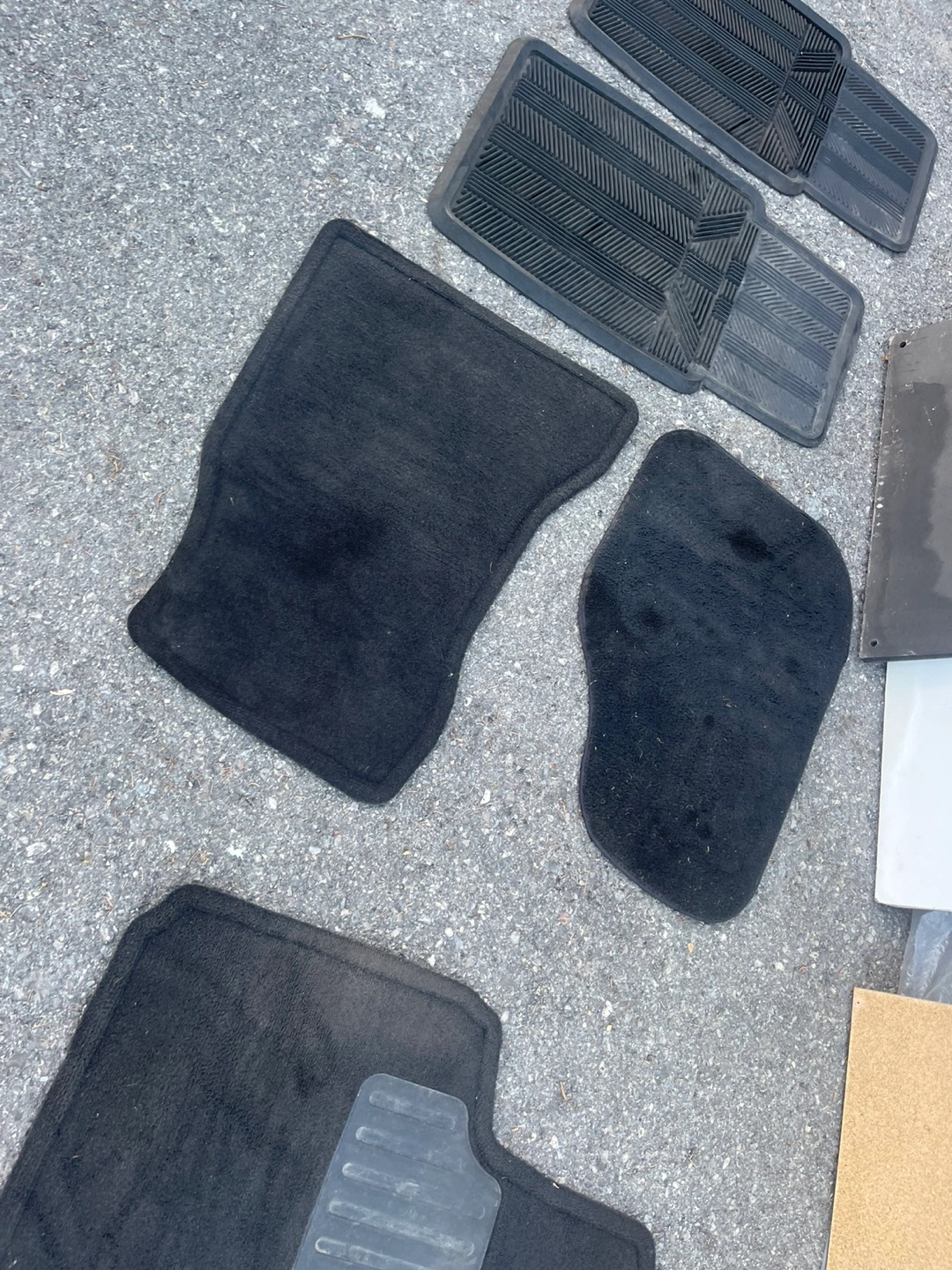 Used car floor mats. Set includes two rubber and two carpet mats. Some wear and tear. Great for replacing worn-out mats.