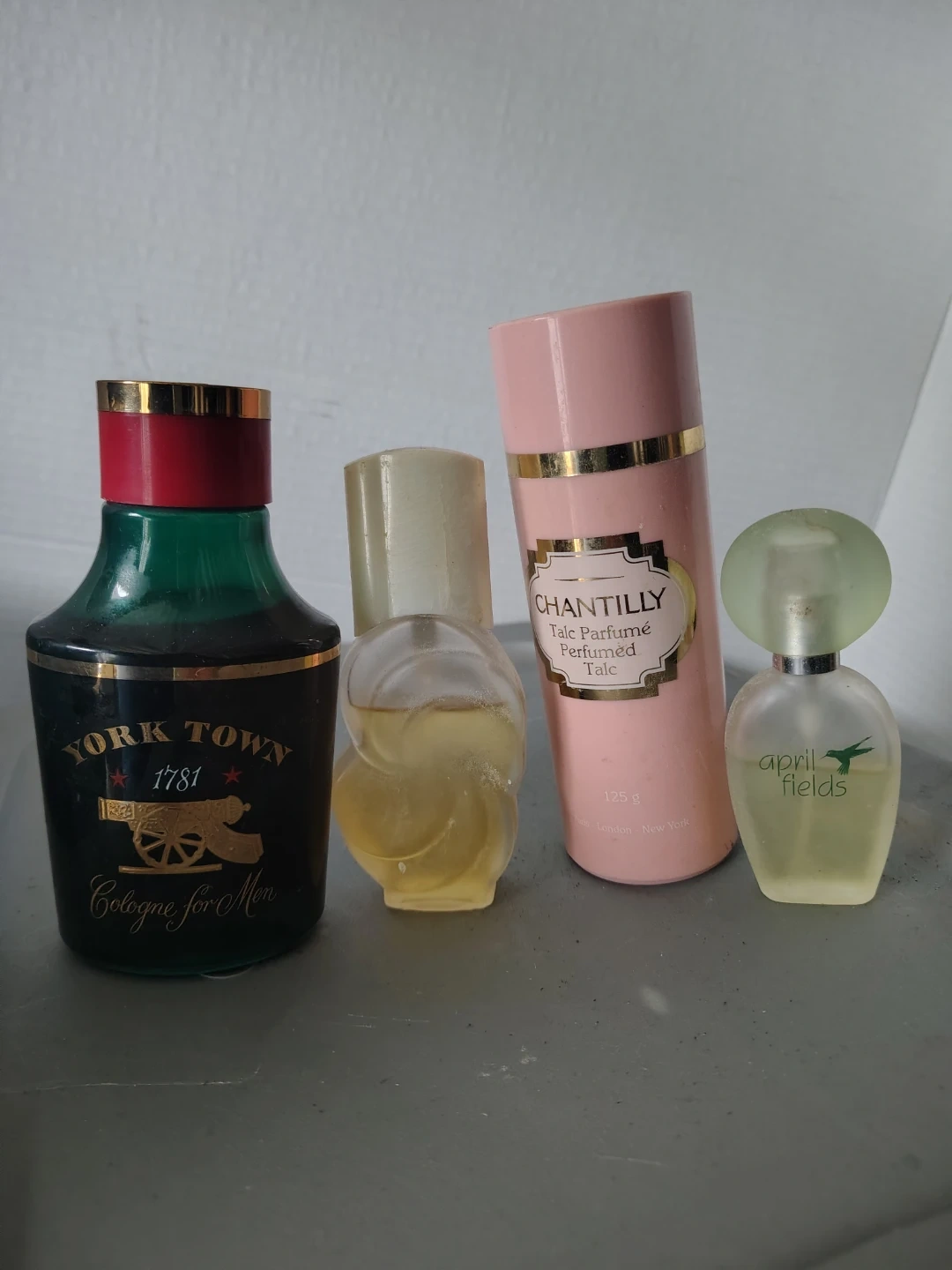 This set includes York Town 1781 Cologne for Men, Chantilly Perfumed Talc, and a small bottle of April Fields. The Chantilly talc is 125g. A nice collection for fragrance enthusiasts!