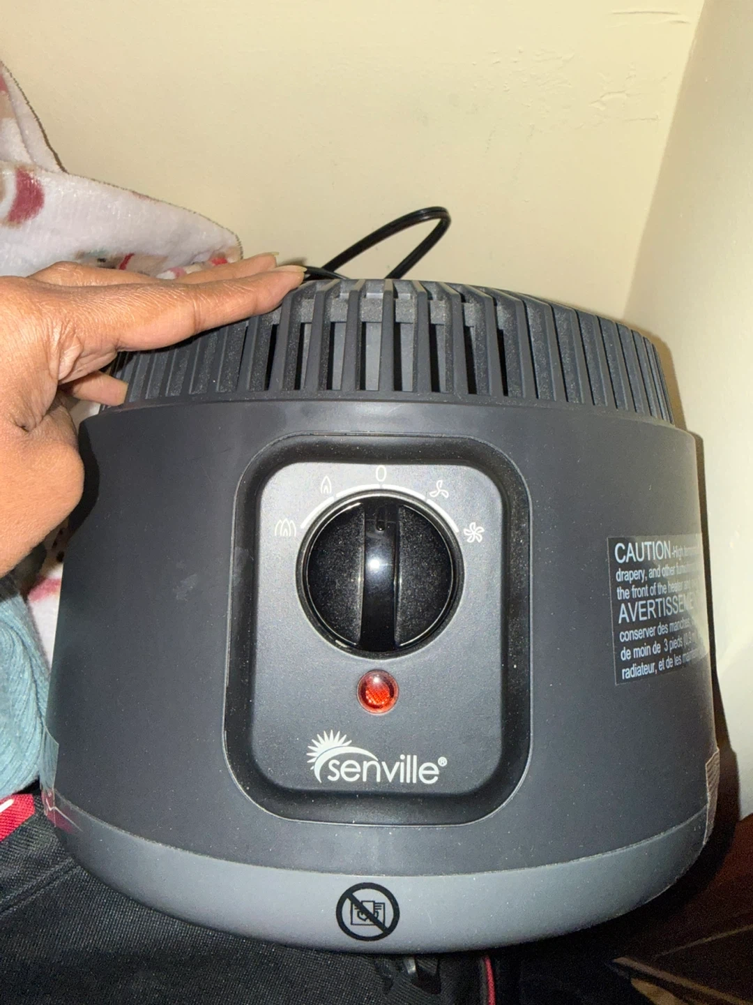 This is a Senville portable electric heater and fan. It features multiple settings for heat and fan speed. Great for small spaces!