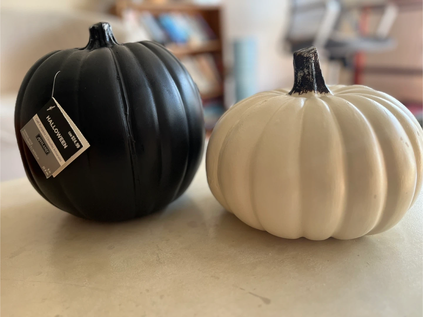 1 x large black pumpkin - 9” tall top of stem x 7.5” wide