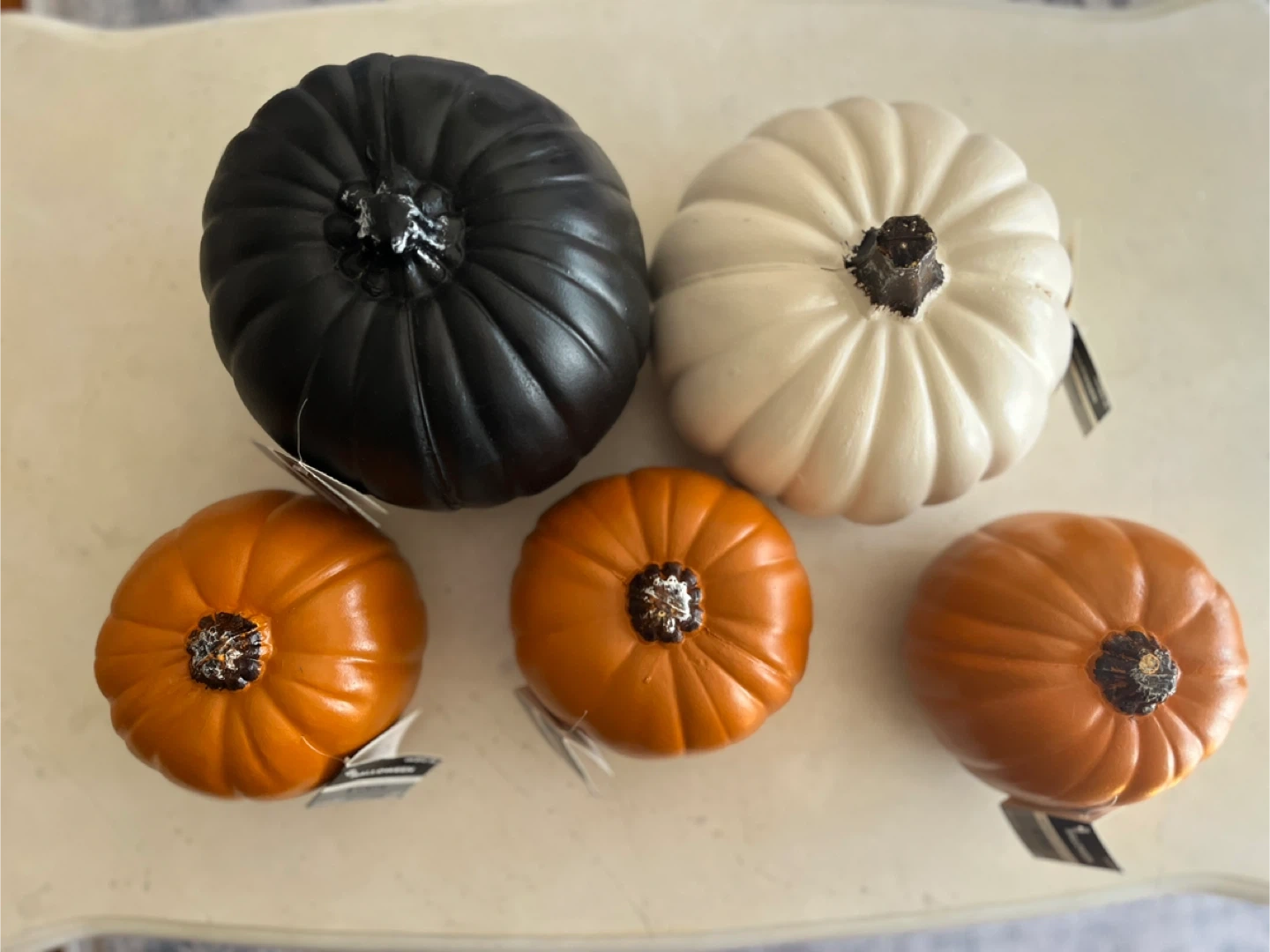 Decorative craft pumpkins perfect for Halloween. Condition is new and price is fraction of regular price for all five.