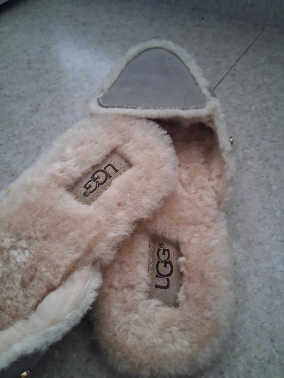 Cozy UGG slippers for Ladies! Size 7. Brand new condition. Perfect grey tone. Neutral. Goes with everything!