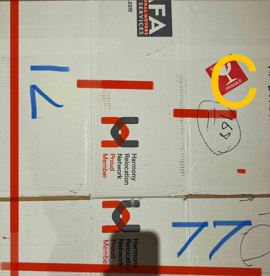 High-quality moving boxes, previously used for international transport. They are strong, clean, and well-maintained.