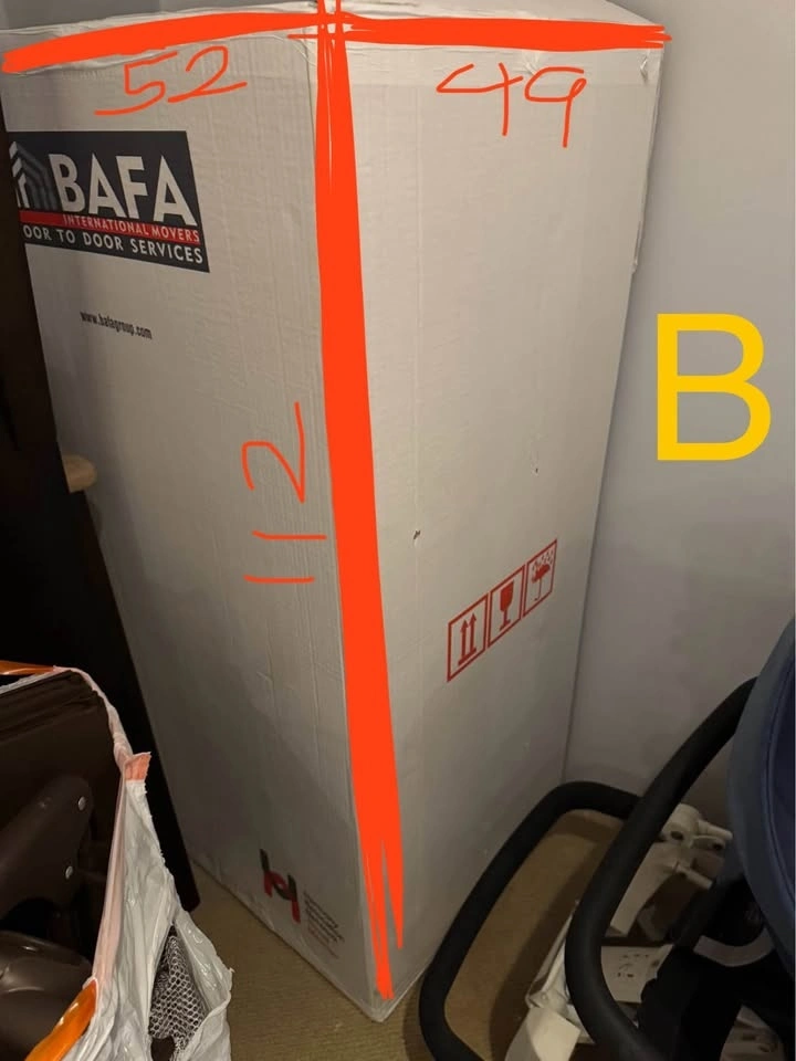 B: Folded 52×49×112 cm / Unfolded 160×52 cm – $8.5 (wardrobe tall size)