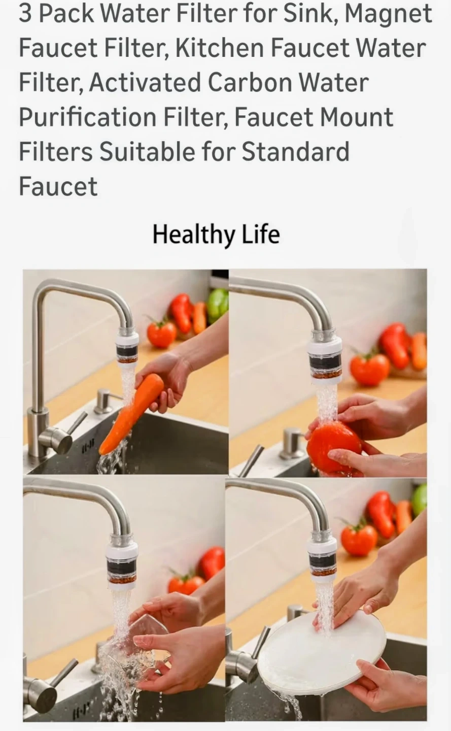 2 Pack Water Filter for Sink, Magnet Faucet Filter, Kitchen Faucet Water Filter, Activated Carbon Water Purification Filter, Faucet Mount Filters Suitable for Standard Faucet